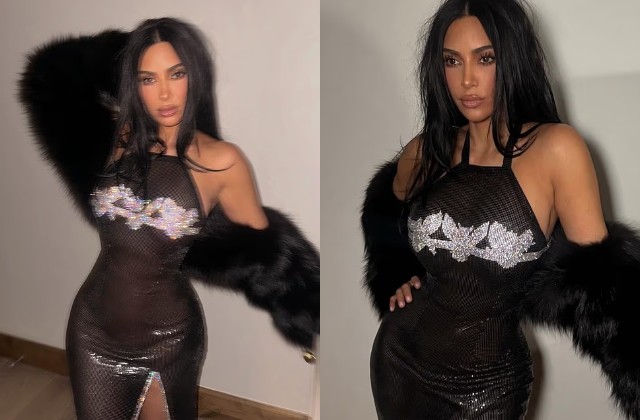 ब्लैक शीयर ड्रेस में किम कार्दशियन का बोल्ड...