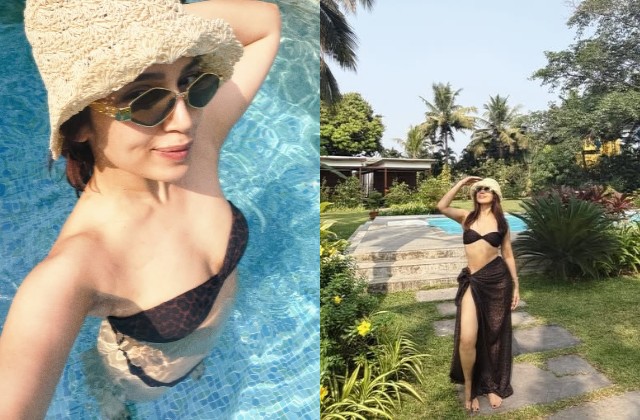 बिकिनी टॉप और शियर स्कर्ट पहन पूल में नहाईं भूमि...