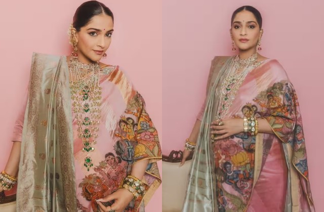खूबसूरत कलमकारी साड़ी में सोनम कपूर ने फ्लॉन्ट...