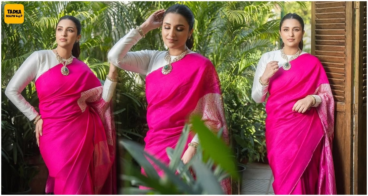 रॉयल नेकलेस और पिंक साड़ी में Proper Patola लगीं...