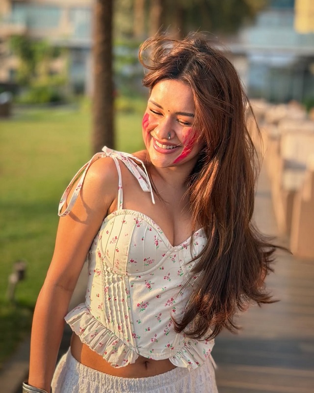 व्हाइट ड्रेस, हाथों और मुंह पर गुलाल लगाए अवनीत...