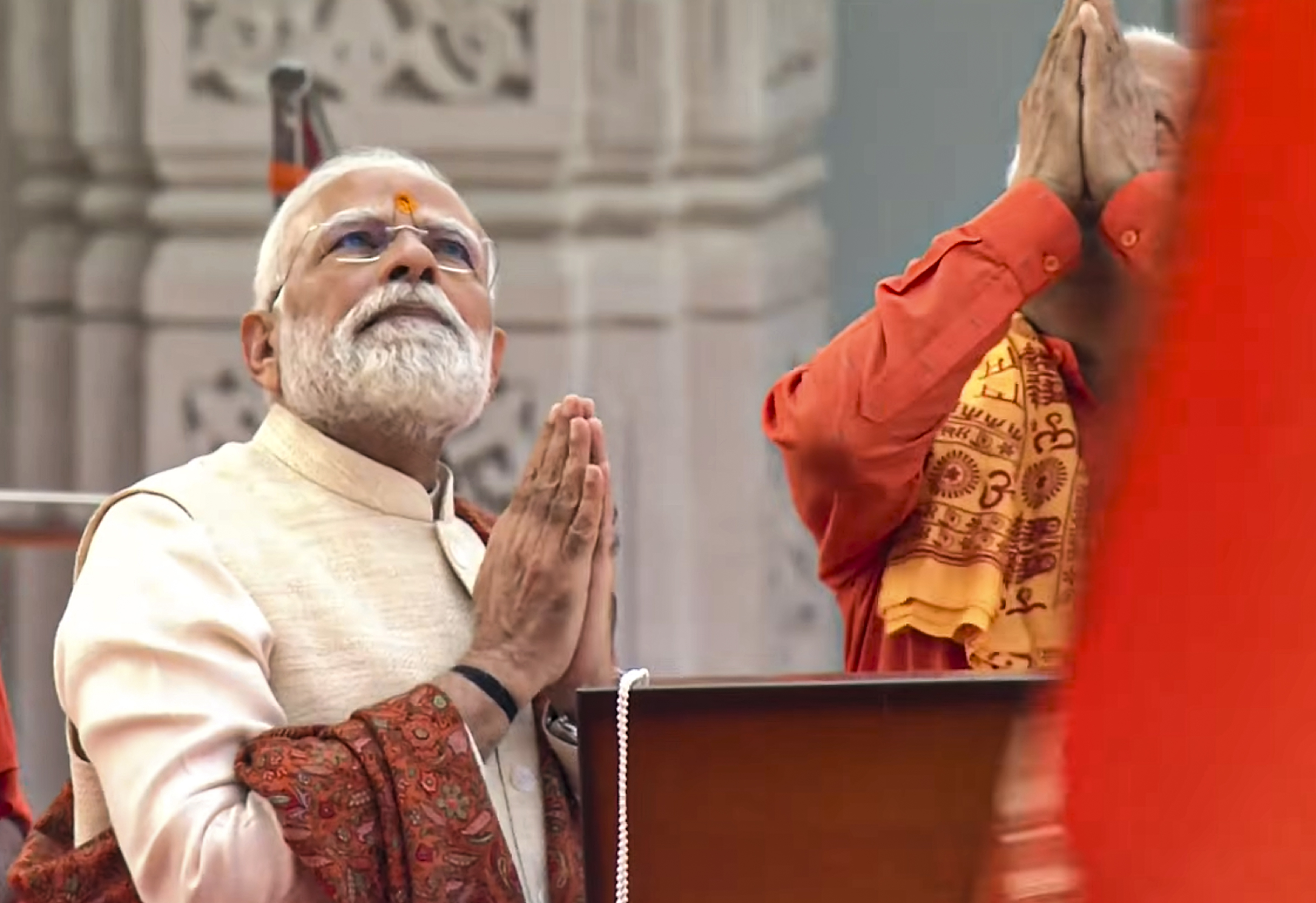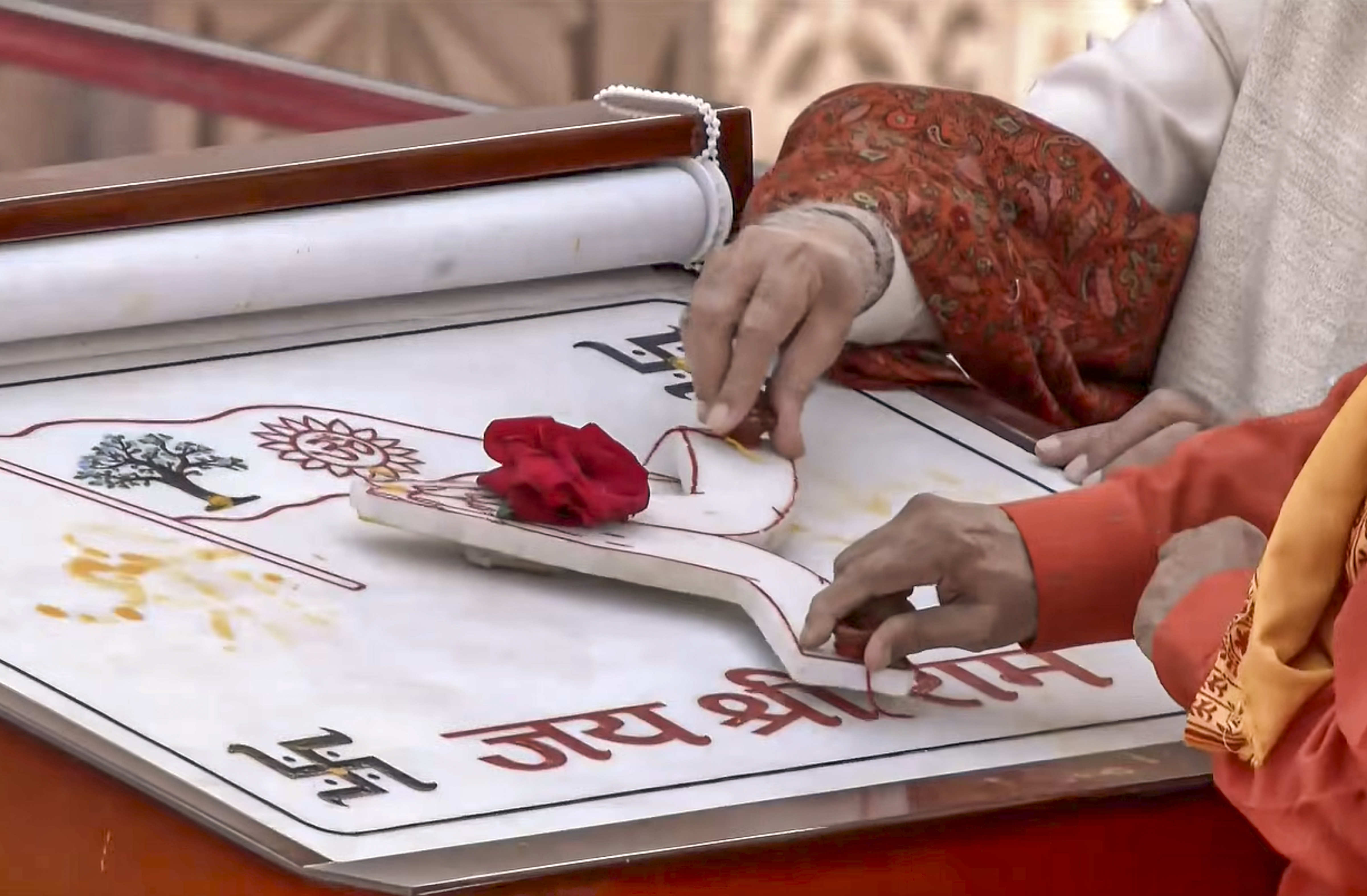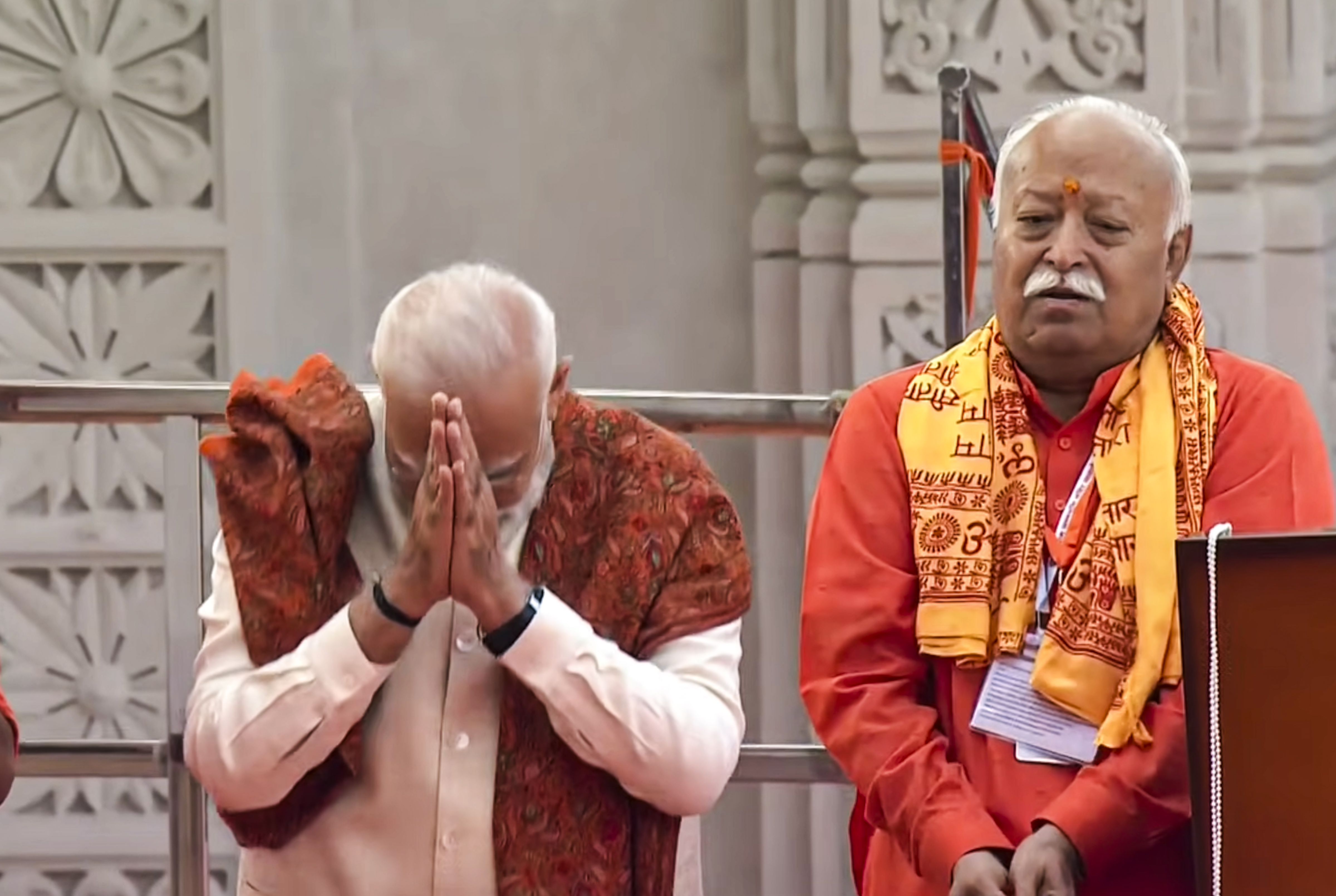 प्रधानमंत्री मोदी और आरएसएस सरसंघचालक मोहन भागवत ने पवित्र श्री राम जन्मभूमि मंदिर के शिखर पर औपचारिक रूप से भगवा ध्वज फहराया, जो मंदिर निर्माण के पूर्ण होने का प्रतीक है।