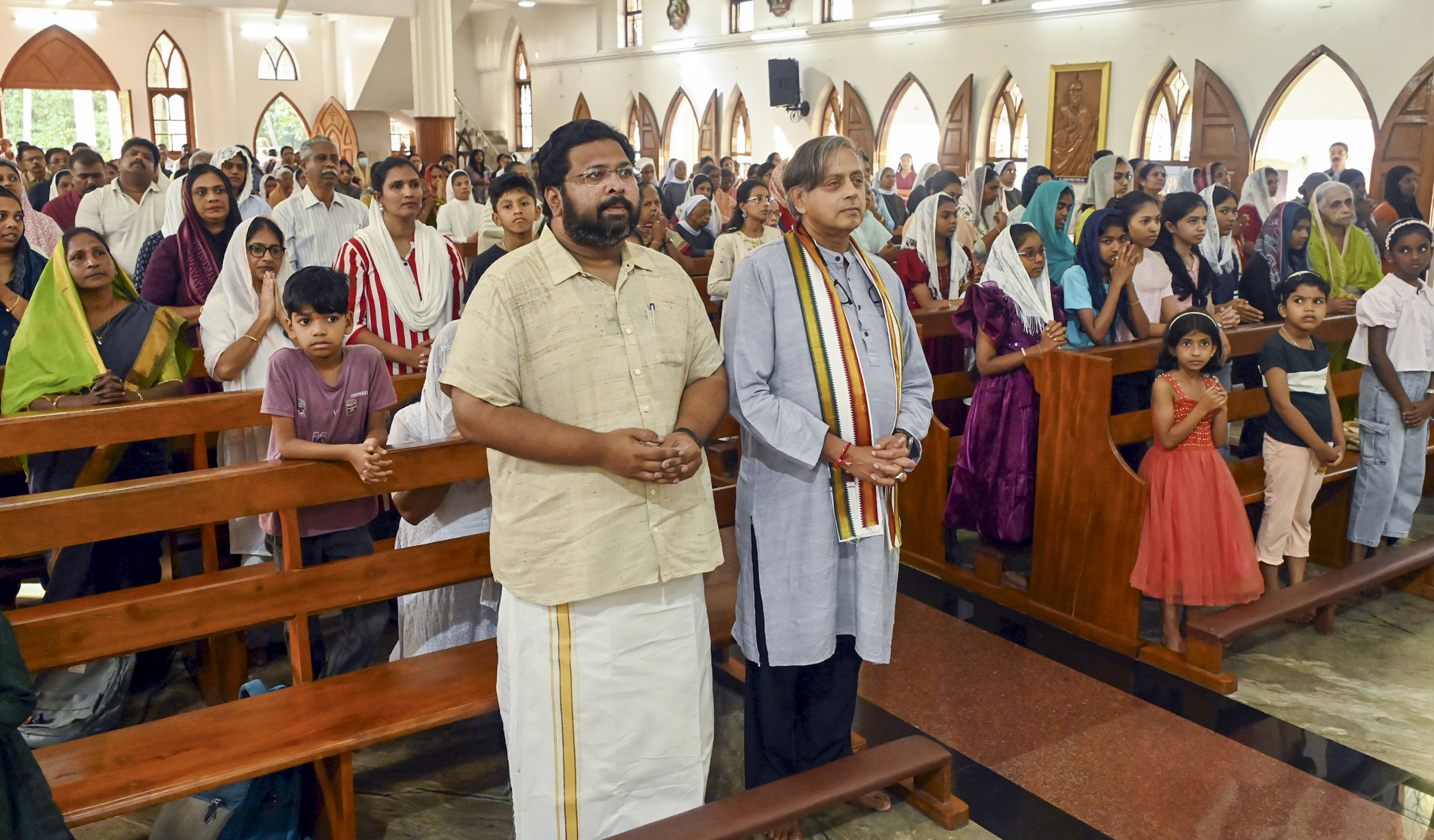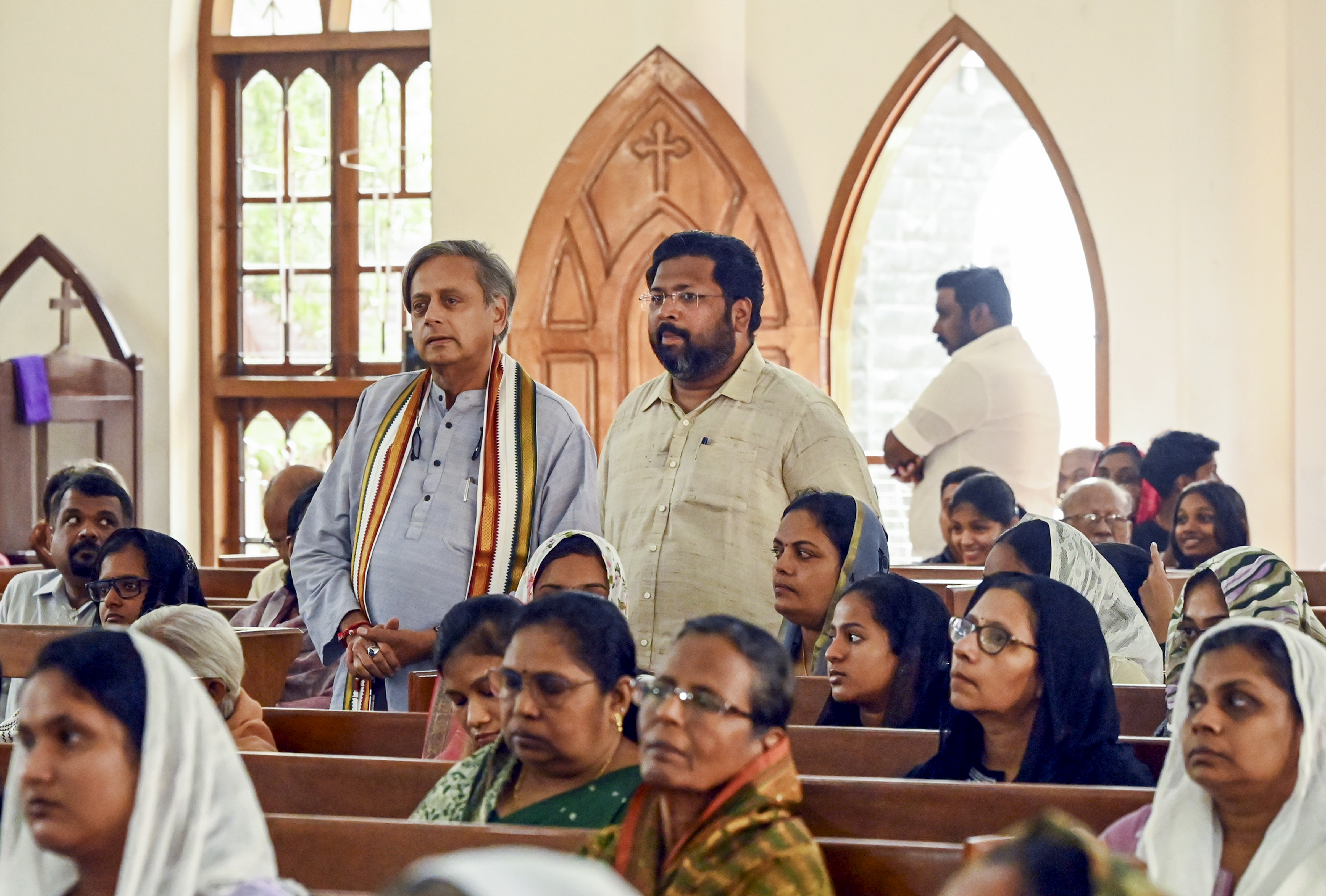 कांग्रेस नेता शशि थरूर ने तिरुवनंतपुरम में सेंट थेरेसा ऑफ लिसीक्स कैथोलिक चर्च में की प्रार्थना