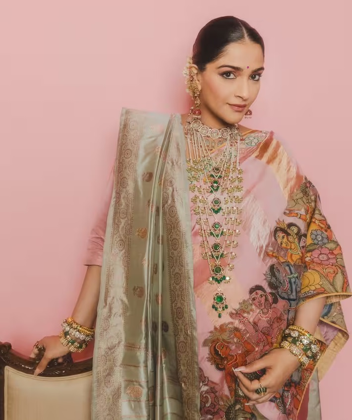 खूबसूरत कलमकारी साड़ी में सोनम कपूर ने फ्लॉन्ट किया बेबी बंप, तस्वीरों में देखते ही बना प्रेग्नेंसी Glow