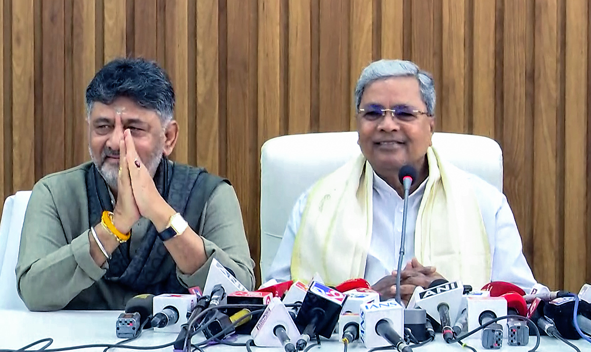 कर्नाटक में सत्तारूढ़ कांग्रेस पार्टी के भीतर चल रहे कथित नेतृत्व विवाद की खबरों पर विराम लगाने के लिए मुख्यमंत्री सिद्धारमैया और उपमुख्यमंत्री डीके शिवकुमार शनिवार को एक अनोखे अंदाज़ में सामने आए।