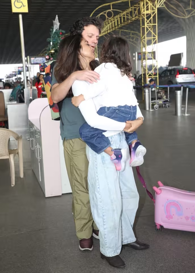 एयरपोर्ट पर वह अपने पति और नन्ही बेटी के साथ नजर आईं, जिनकी तस्वीरें देखते ही देखते सोशल मीडिया पर वायरल हो गईं।