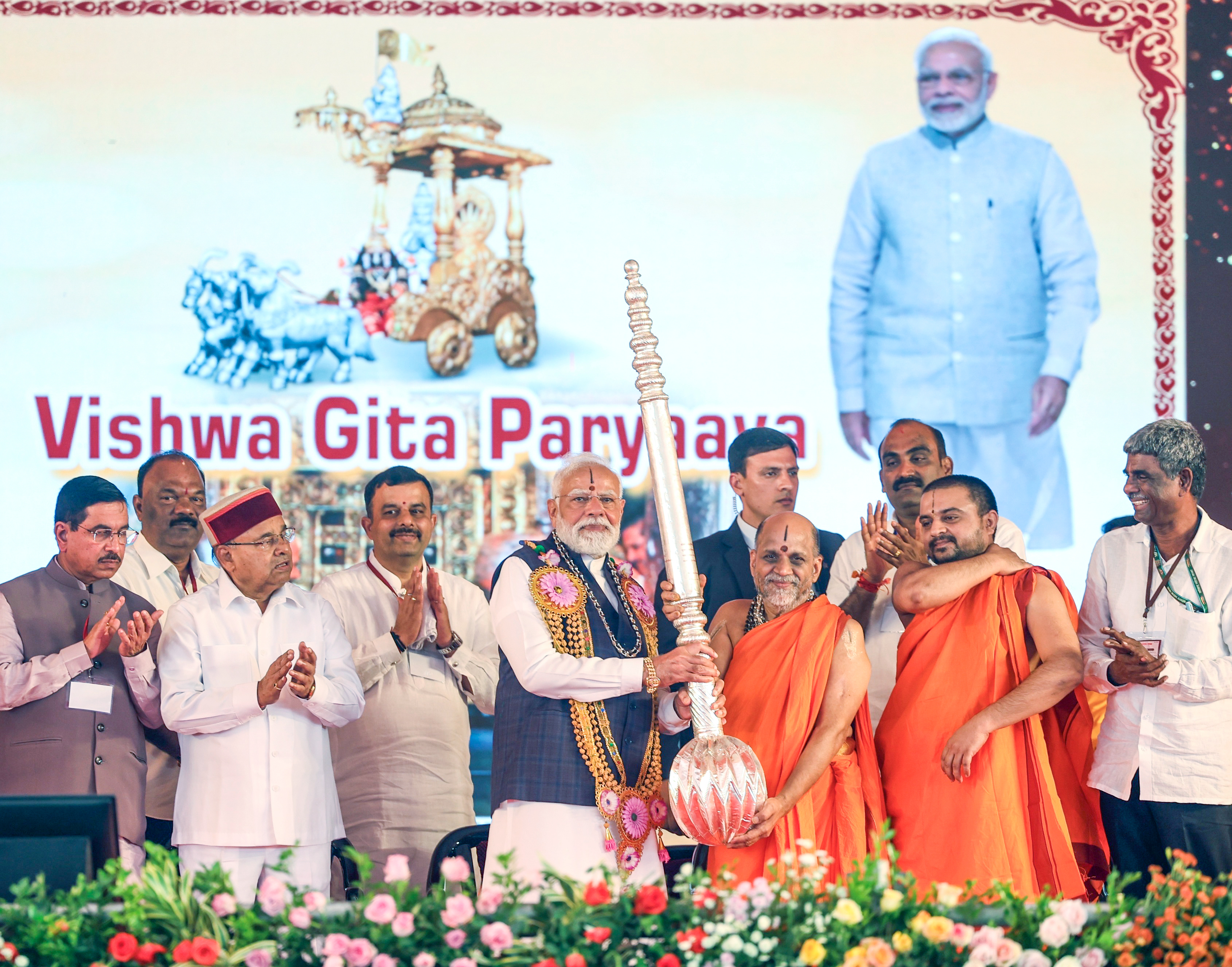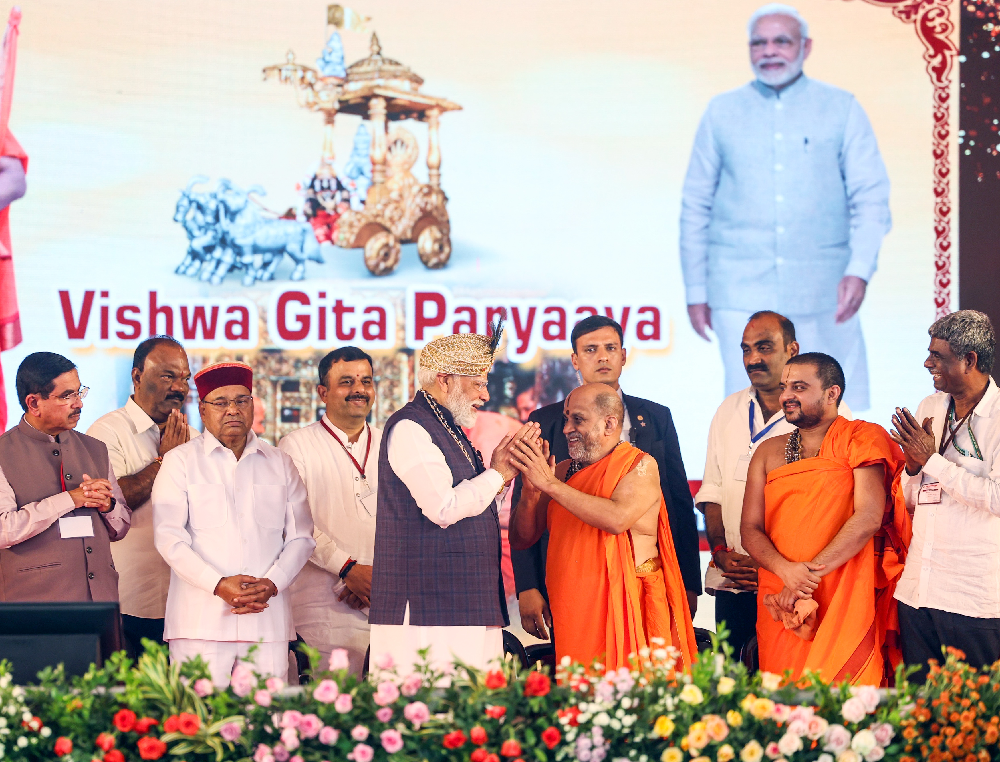 प्रधानमंत्री नरेंद्र मोदी शुक्रवार को कर्नाटक के उडुपी में ऐतिहासिक श्री कृष्ण मठ पहुंचे। जहां उन्होंने लक्ष गीता पाठन में भाग लिया।