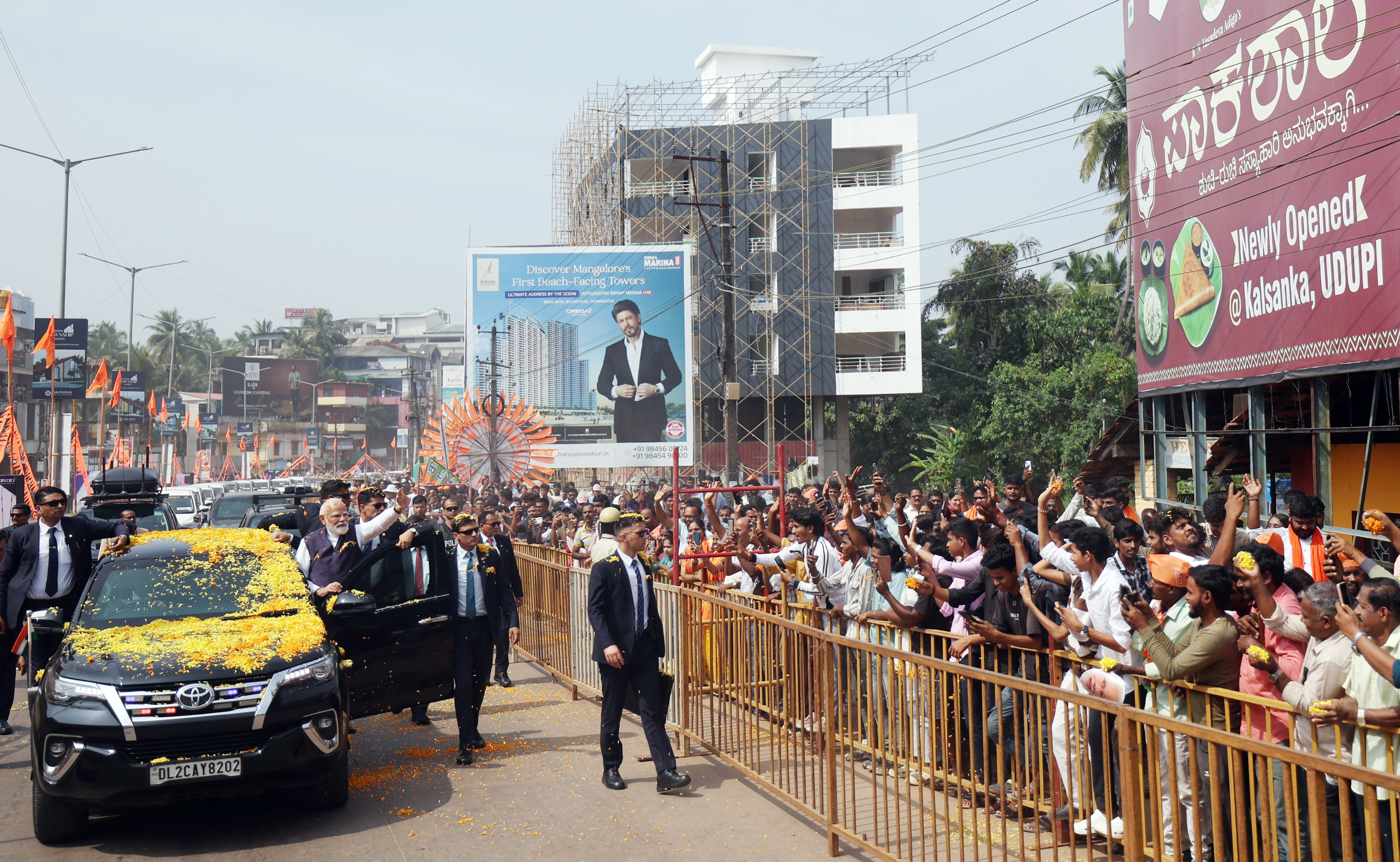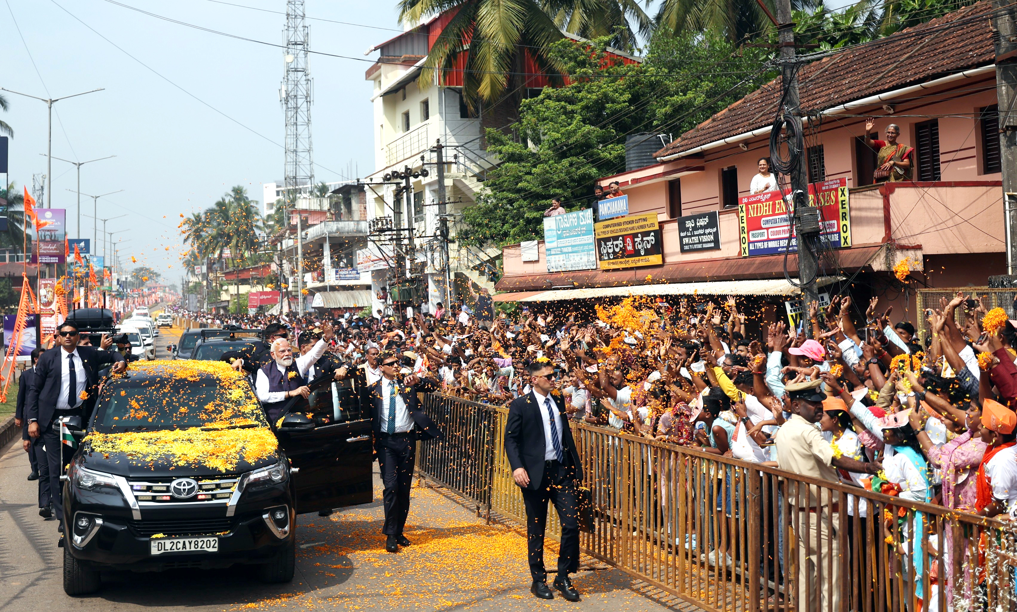 पीएम मोदी 14 साल बाद उडुपी पहुंचे। यहां उन्होंने विशाल रोड शो किया।