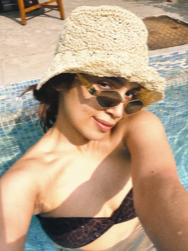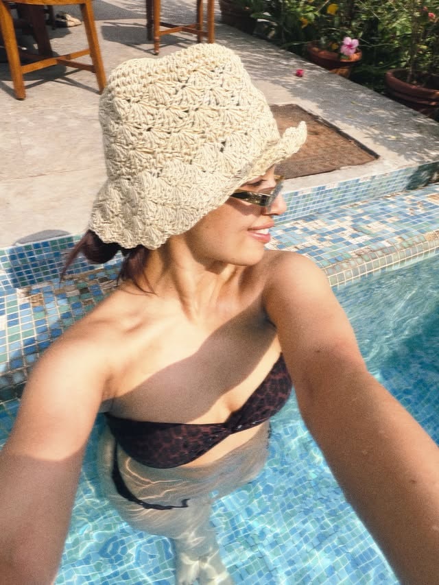 बिकिनी टॉप और शियर स्कर्ट पहन पूल में नहाईं भूमि पेडनेकर, बड़ी हैट और सनग्लासेस लगा दिखाईं सिजलिंग अदाएं