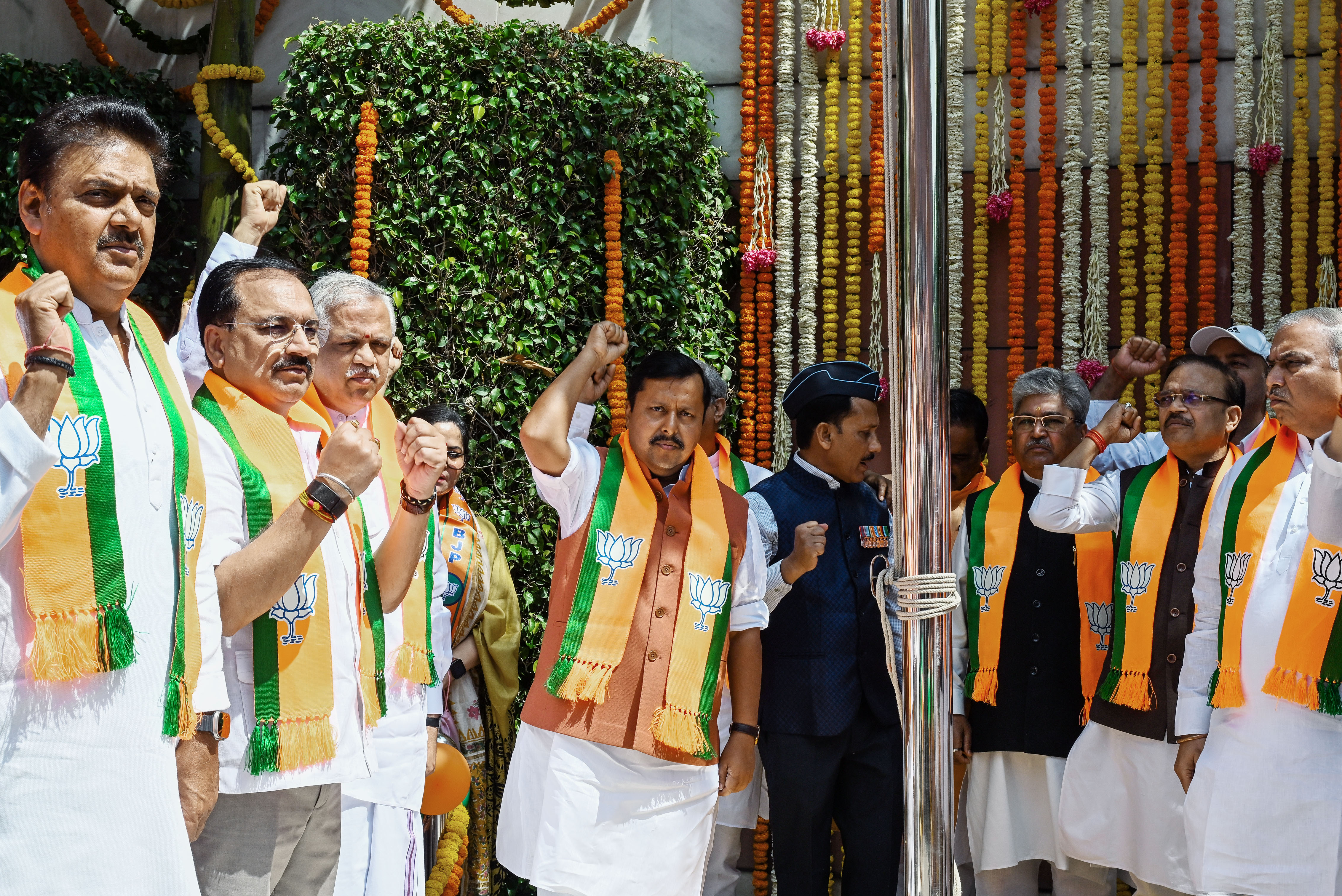 बीजेपी के राष्ट्रीय अध्यक्ष नितिन नवीन, पार्टी के 47वें स्थापना दिवस के अवसर पर, नई दिल्ली स्थित बीजेपी मुख्यालय में