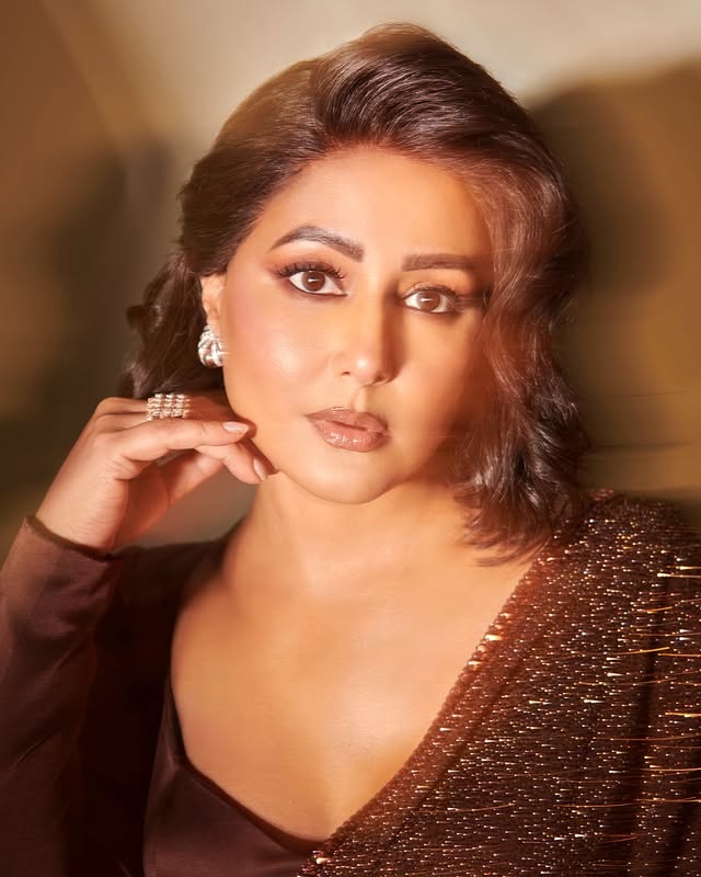 ब्राउन कलर का यह शेड हिना की पर्सनैलिटी पर बेहद जच रहा है, जो उनके पूरे लुक को सॉफ्ट, वार्म और बेहद आकर्षक बना रहा है।