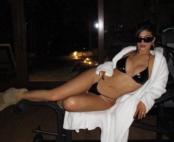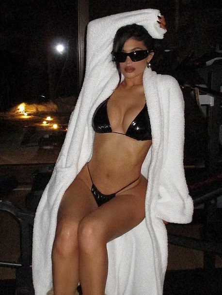 इन तस्वीरों में 28 साल की काइली जेनर ब्लैक लेटेक्स बिकिनी पहने दिखाई दे रही हैं।