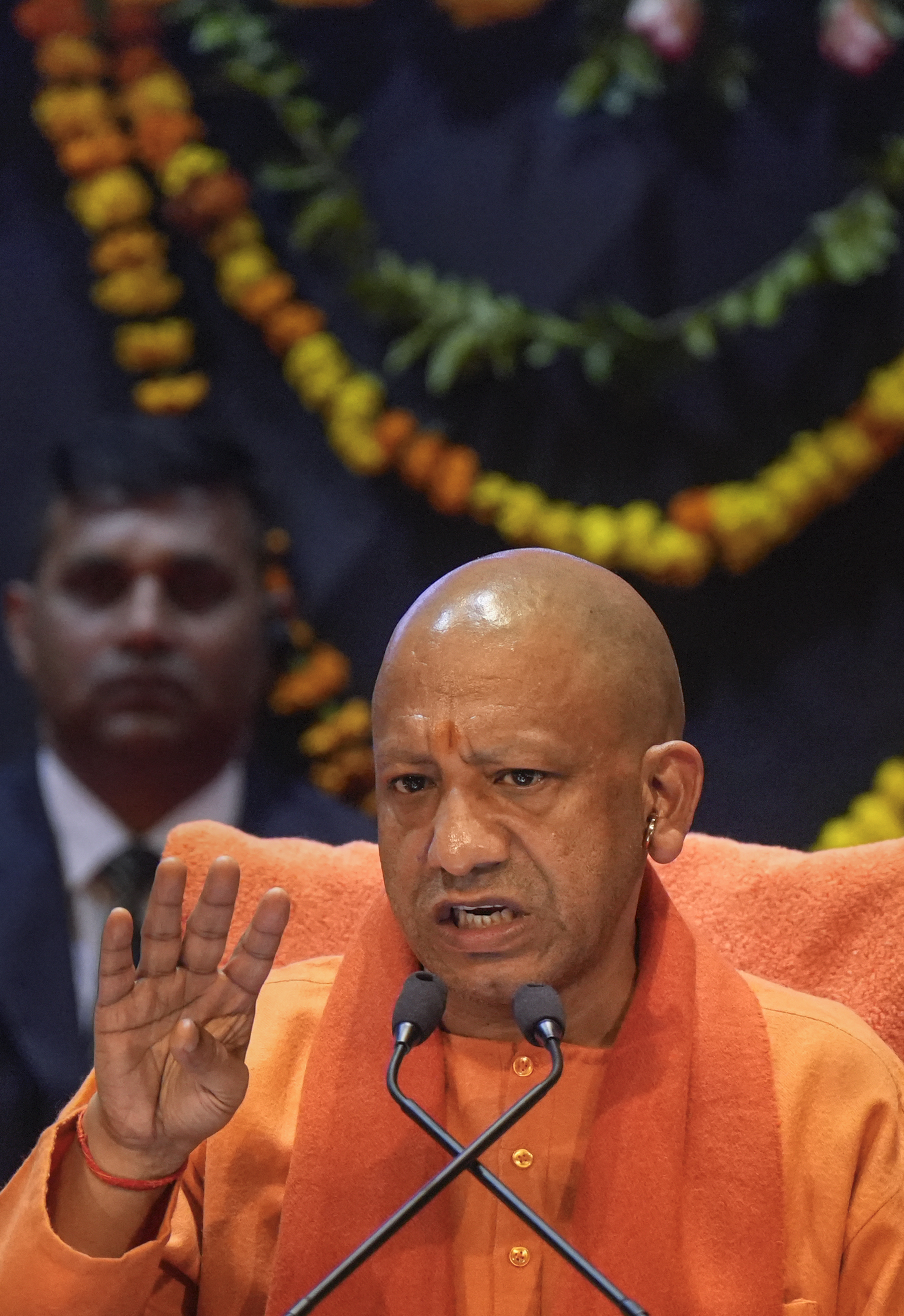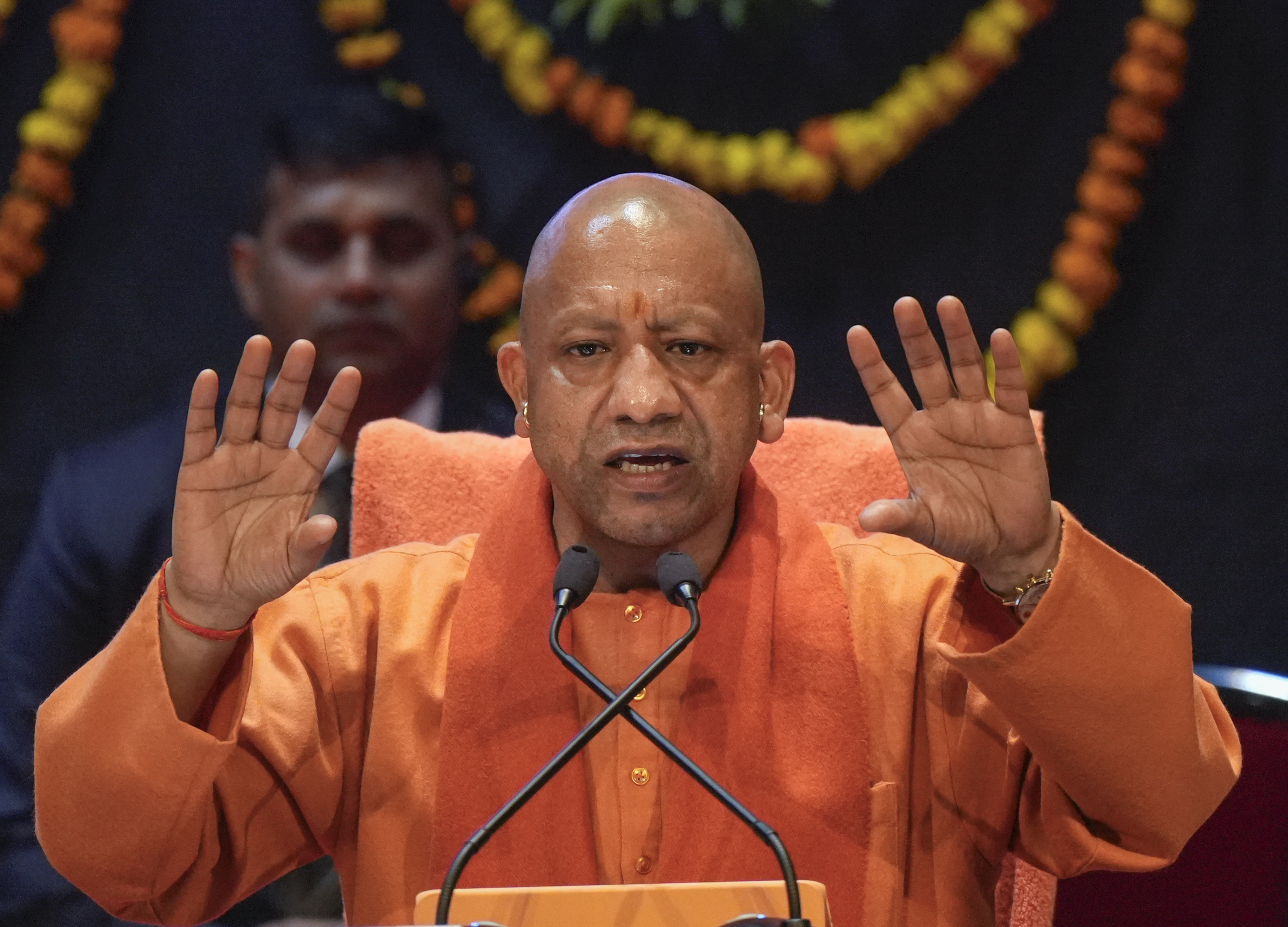 योगी आदित्यनाथ ने लखनऊ के लोक भवन में एक प्रेस कॉन्फ्रेंस को संबोधित किया