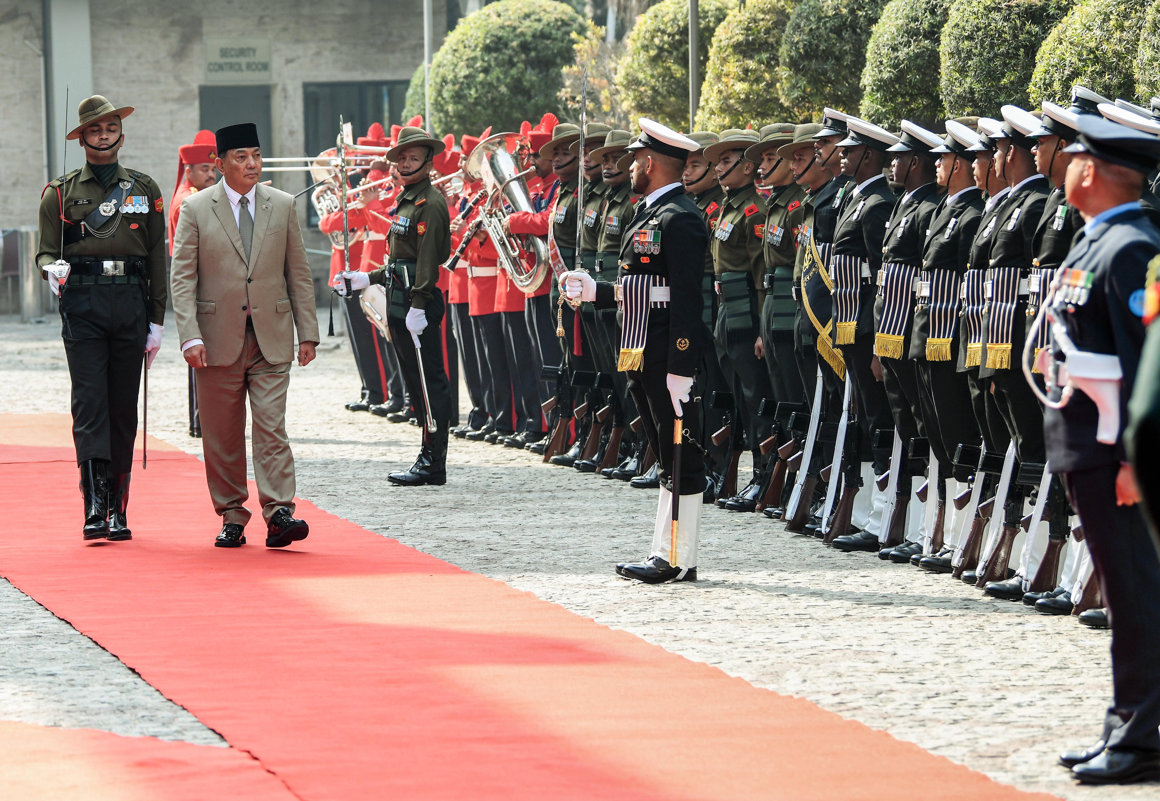 इंडोनेशिया के रक्षा मंत्री सजाफ्री स्जामसोएद्दीन ने नई दिल्ली में तीसरे भारत-इंडोनेशिया रक्षा मंत्रियों की वार्ता के दौरान गार्ड ऑफ ऑनर का निरीक्षण किया।