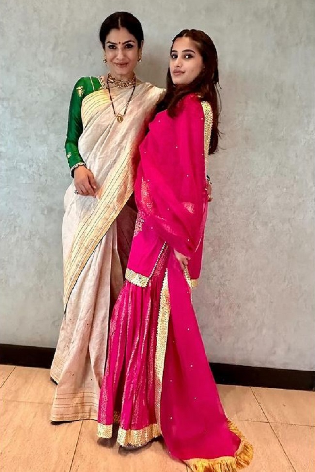 रवीना के साथ उनकी बेटी राशा थडानी भी नजर आ रही हैं।