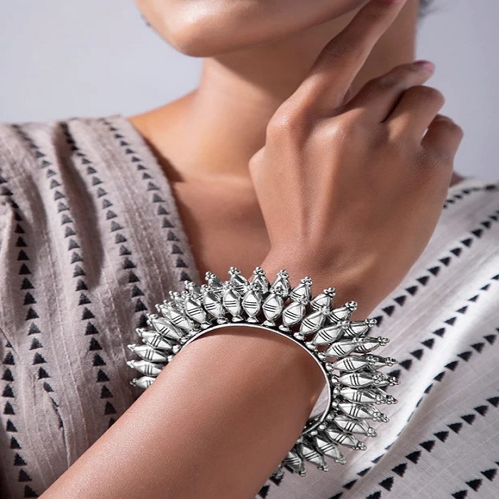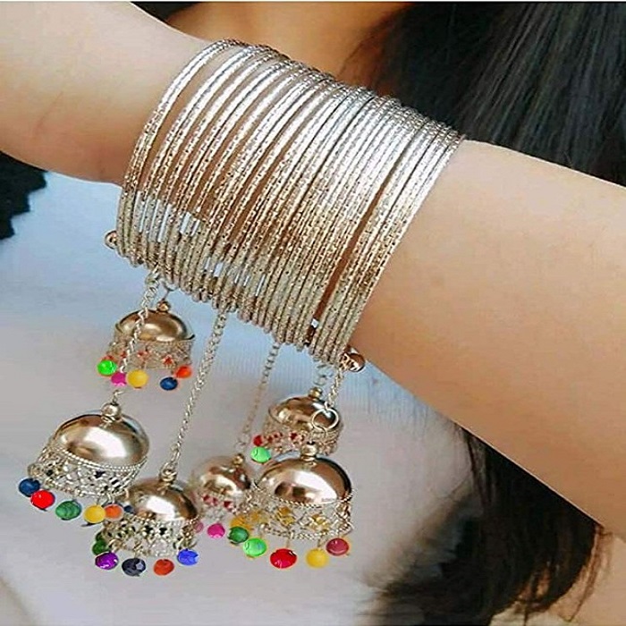 ऑक्सीडाइज्ड झुमकी वाले कंगन भी आप शादी में ट्राई कर सकते हैं।