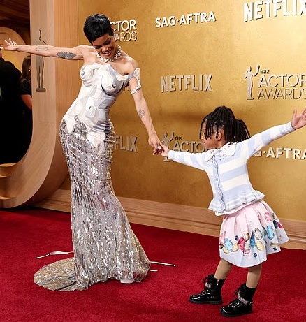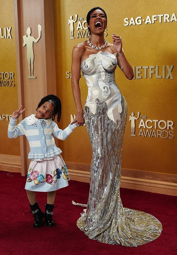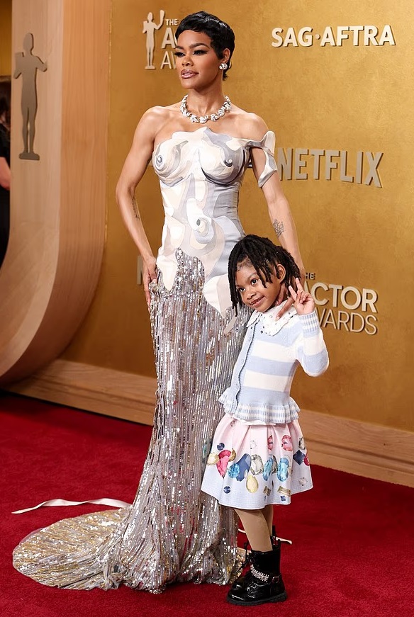 शिमरी गाउन में टियाना टेलर Actor Awards में बिखेरा जलवा, रेड कार्पेट पर एक्ट्रेस की ड्रेस को संभालती दिखीं 5 साल की बेटी
