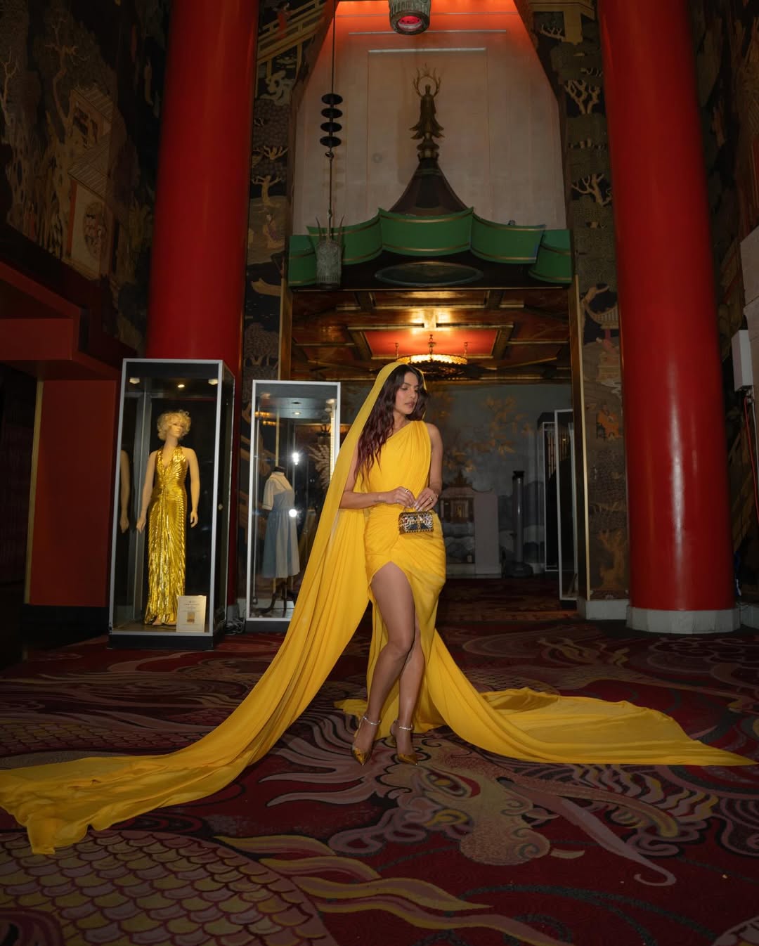 साड़ी इंस्पायर्ड येलो गाउन छाईं प्रियंका चोपड़ा, सिर पर पल्लू ओढ़ दिखाया संस्कार अंदाज तो थाई स्लिट में फ्लॉन्ट की टोन्ड लेग्स