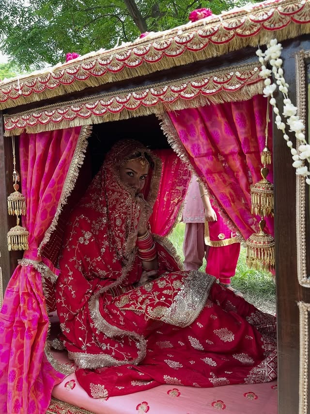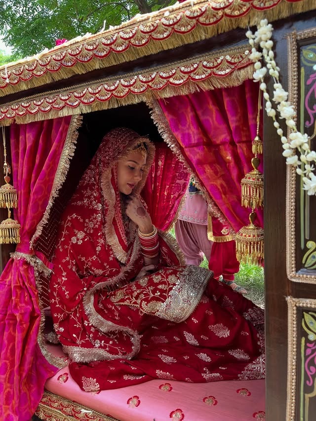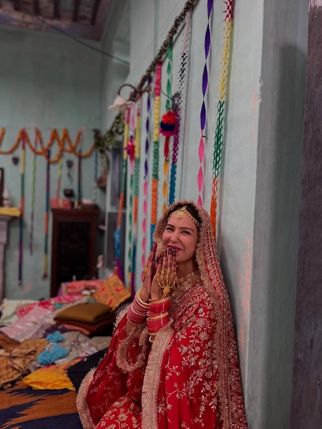 इन तस्वीरों में वह पारंपरिक लाल रंग के लहंगे में दुल्हन बनी बेहद खूबसूरत लग रही हैं।