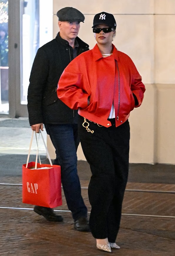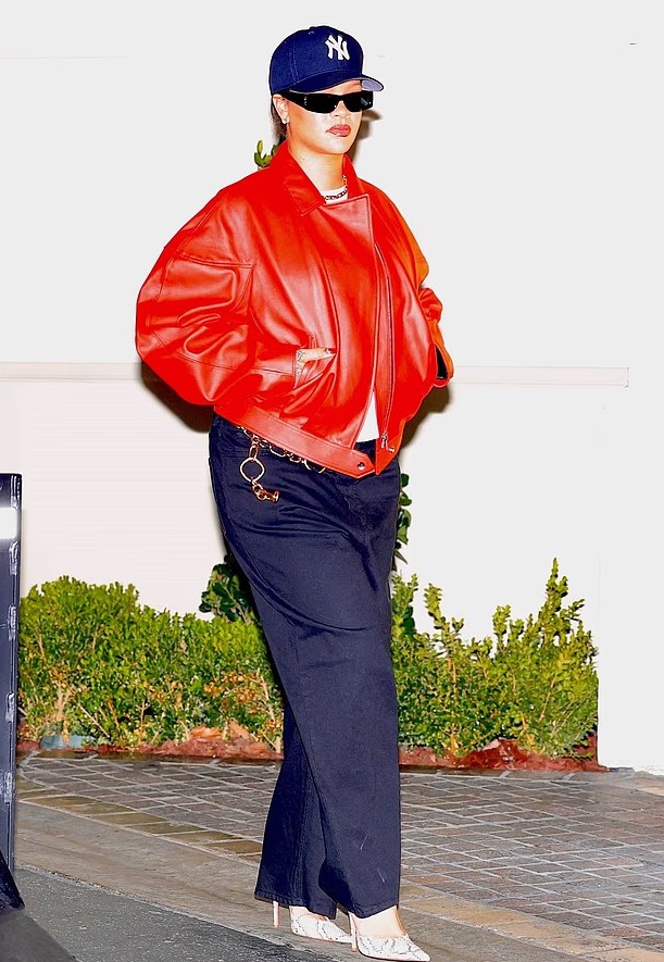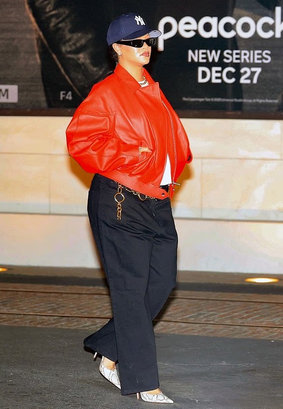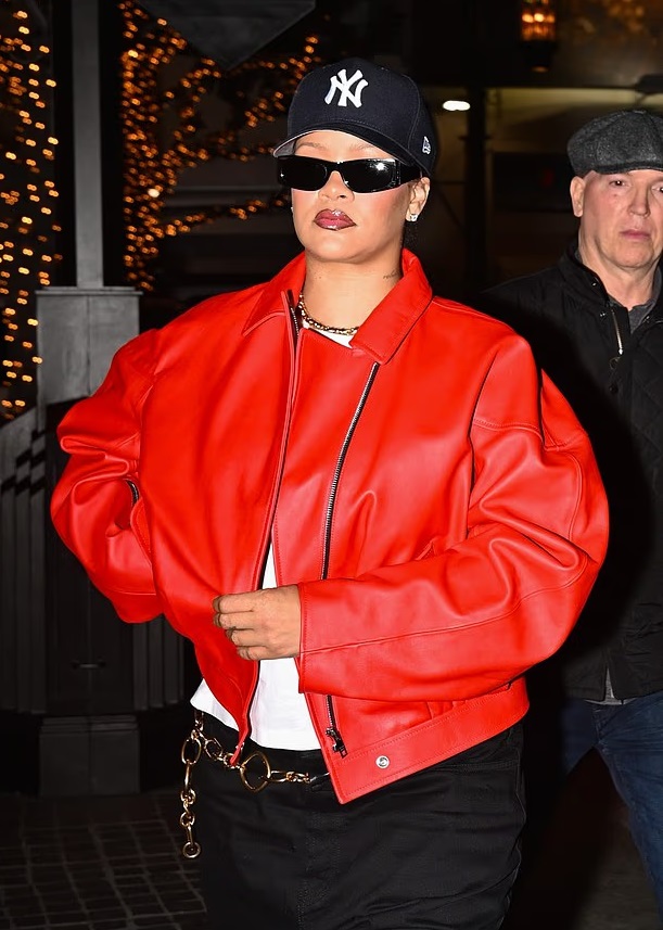 लुक की बात करें तो इस दौरान 37 साल की रिहाना ओवरसाइज़ रेड लेदर जैकेट पहने नजर आईं।