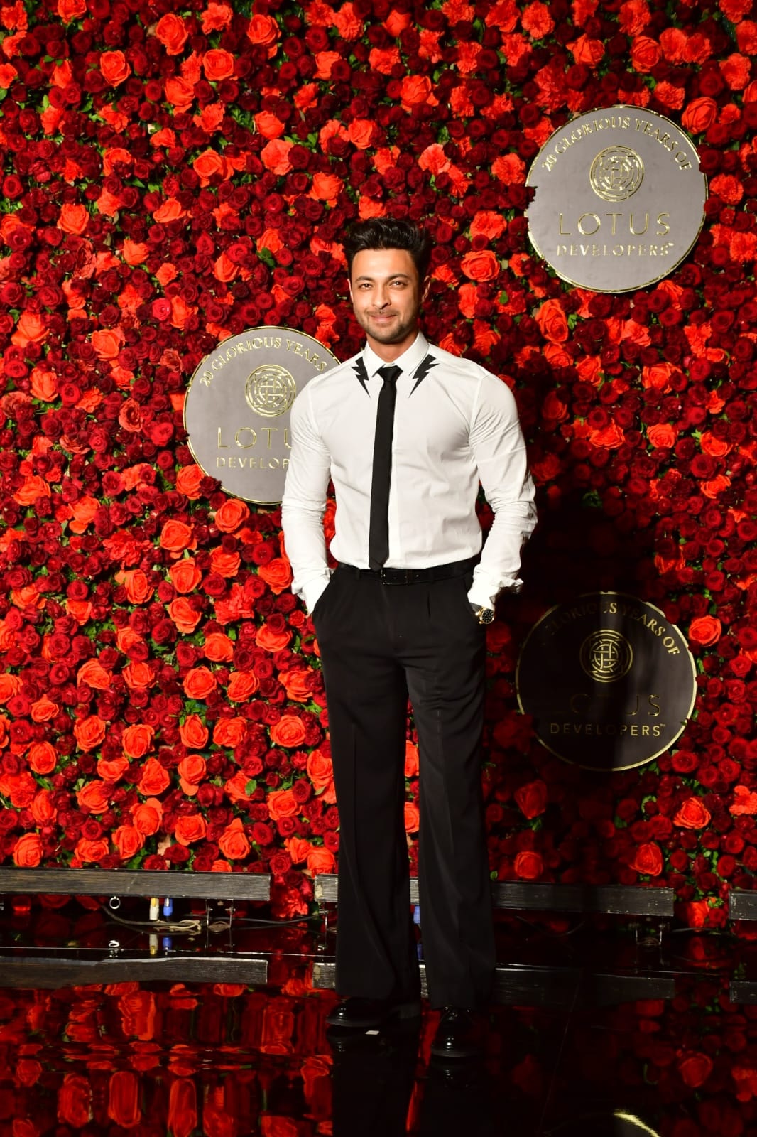 आयुष शर्मा भी पार्टी में ब्लैक व्हाइट लुक में दिखे।
