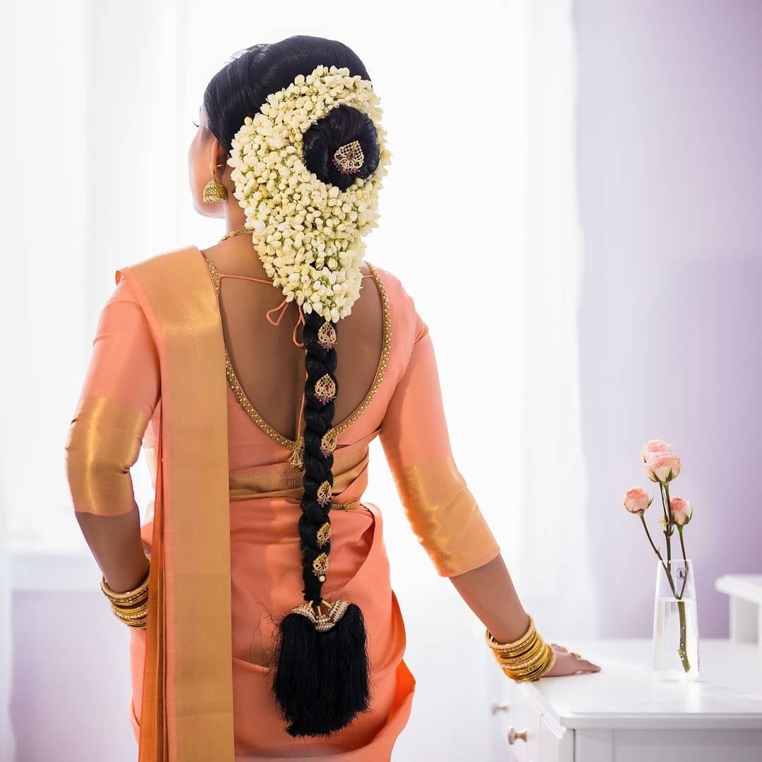 आप चोटी बनाकर उस पर हैवी गजरा ट्राई कर सकती हैं।