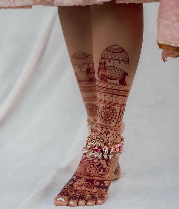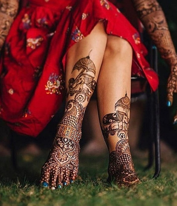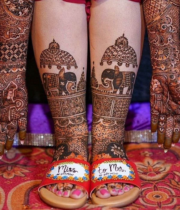 आप एलिफेंट वाली डोली मेहंदी डिजाइन भी लगवा सकती हैं। भाऱी-भरकम मेहंदी के लिए यह डिजाइन एकदम बेस्ट है।