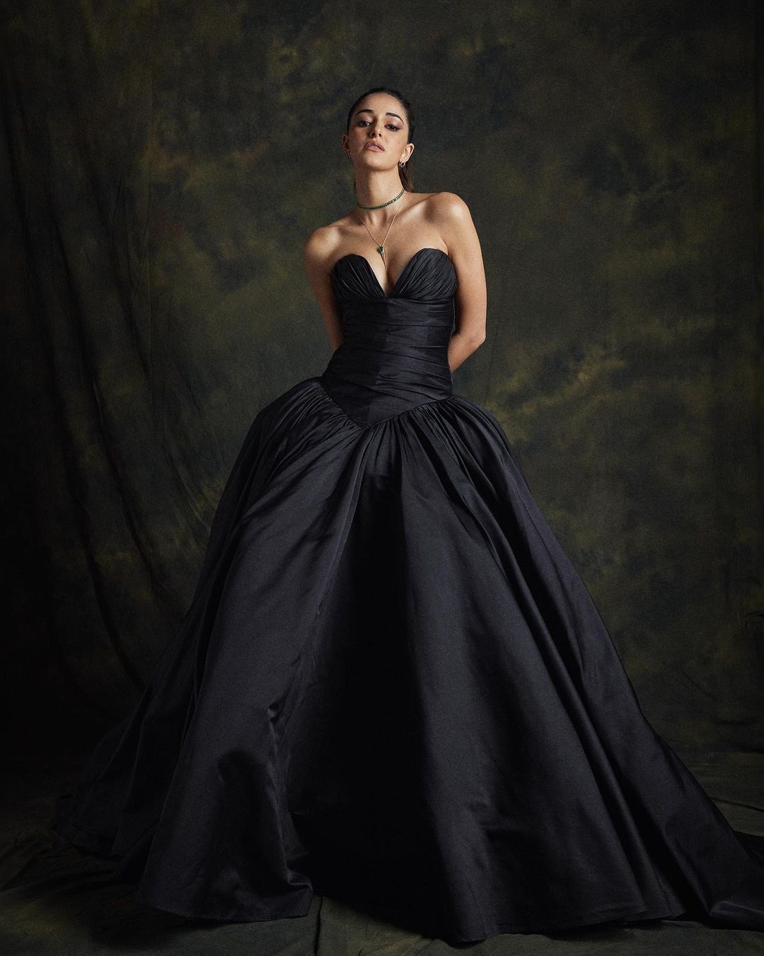 अनन्या का ऑफ शॉल्डर ब्लैक गाउन आप वेडिंग सीजन में पहन सकती हैं।