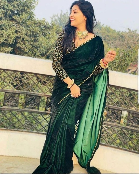 एमराल्ड ग्रीन वेलवेट साड़ी