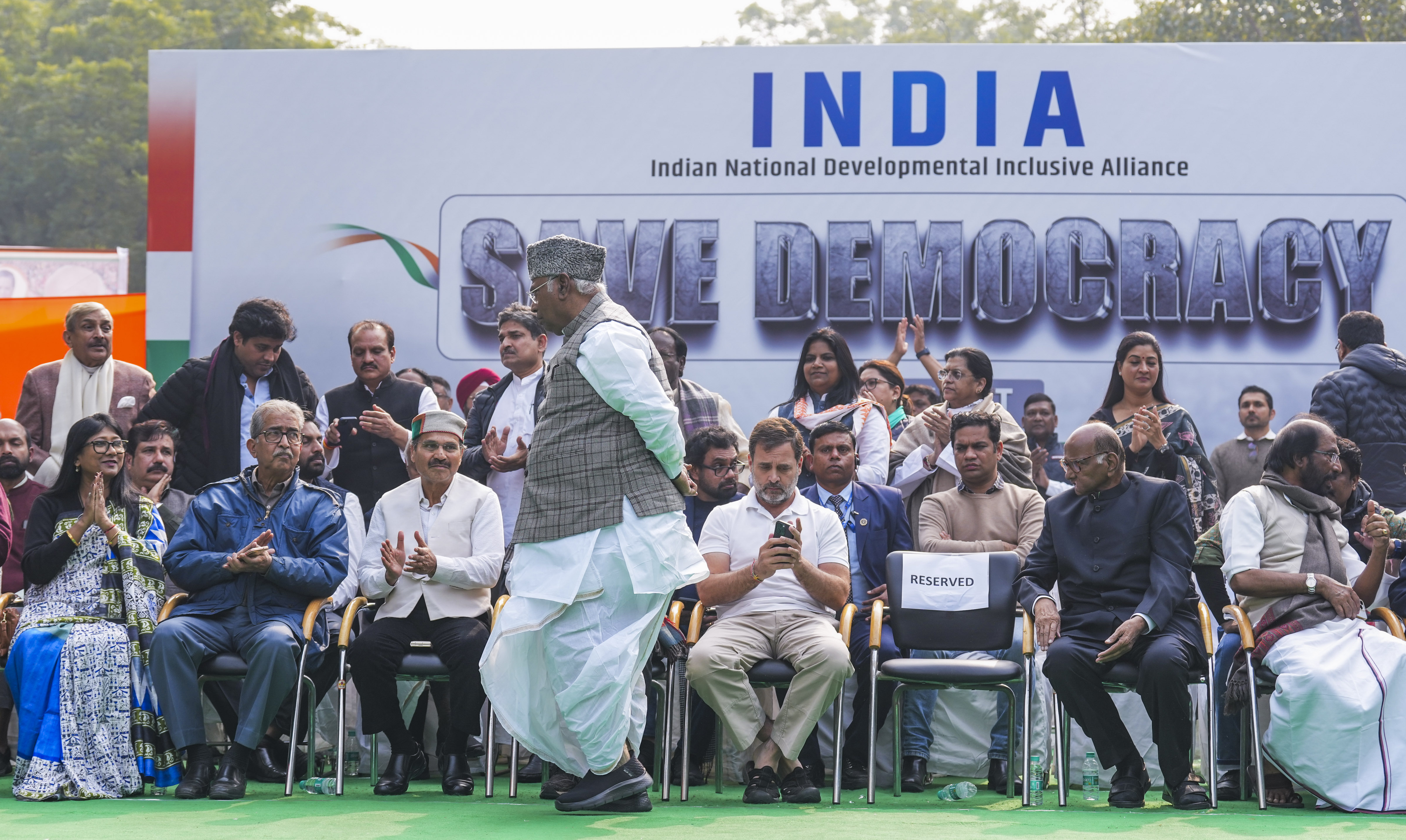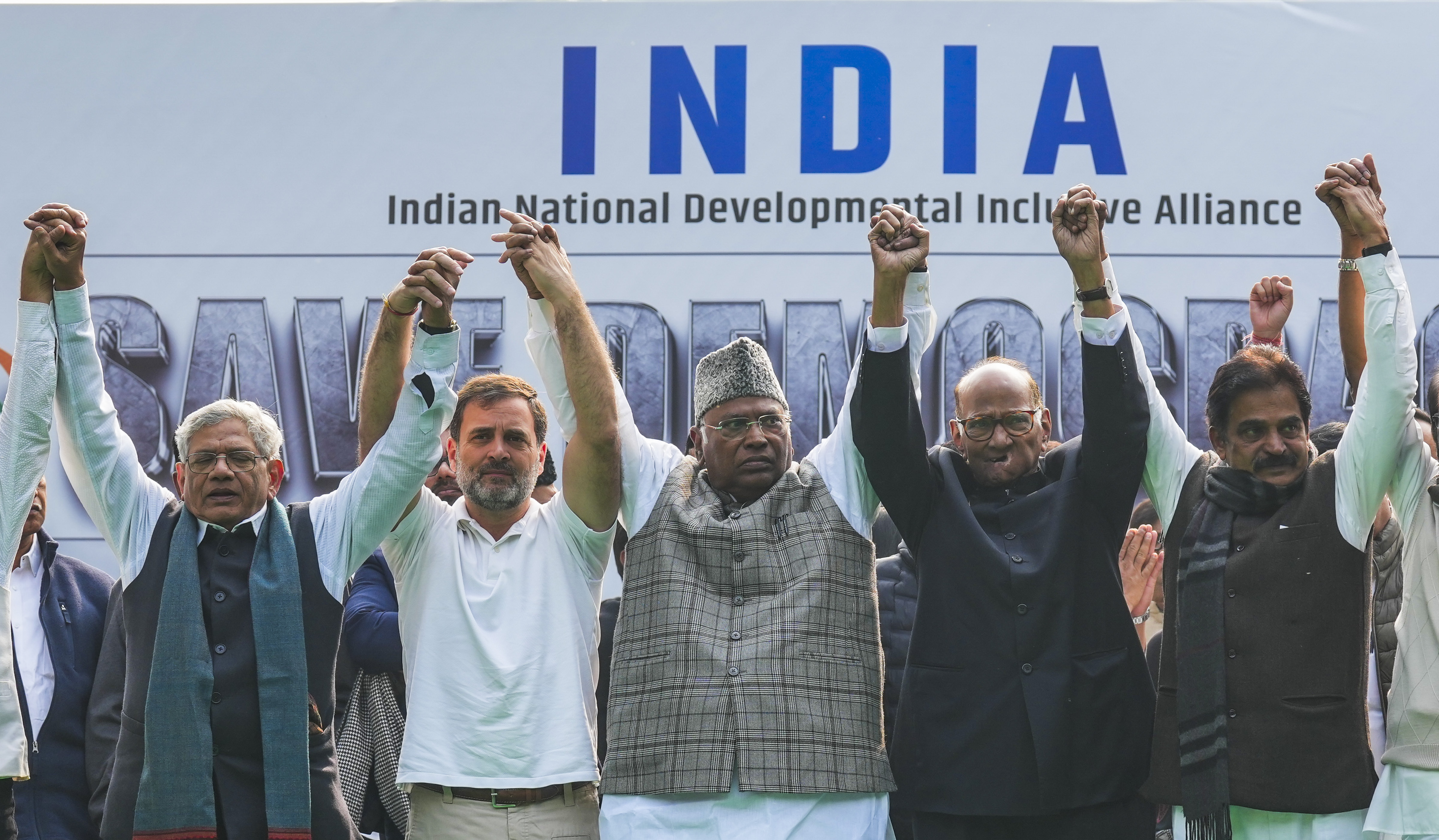 I.N.D.I.A गठबंधन के दलों ने सांसदों के निलंबन के खिलाफ जंतर-मंतर पर किया विरोध प्रदर्शन