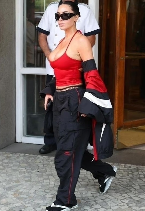 चेरी रेड स्किम्पी टैंक टॉप में Kim Kardashian का हॉट लुक, होटल से बाहर स्पॉट हुईं एक्ट्रेस ने अपनी बोल्डनेस से खींचा सबका ध्यान