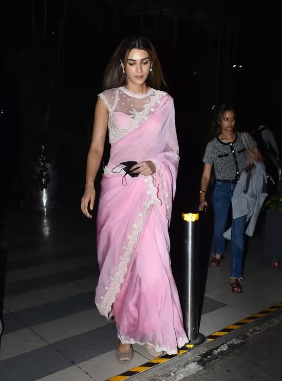 लुक की बात करें तो कृति सेनन दौरान बेबी पिंक कलर की खूबसूरत साड़ी पहनकर एयरपोर्ट पर स्पॉट हुईं।