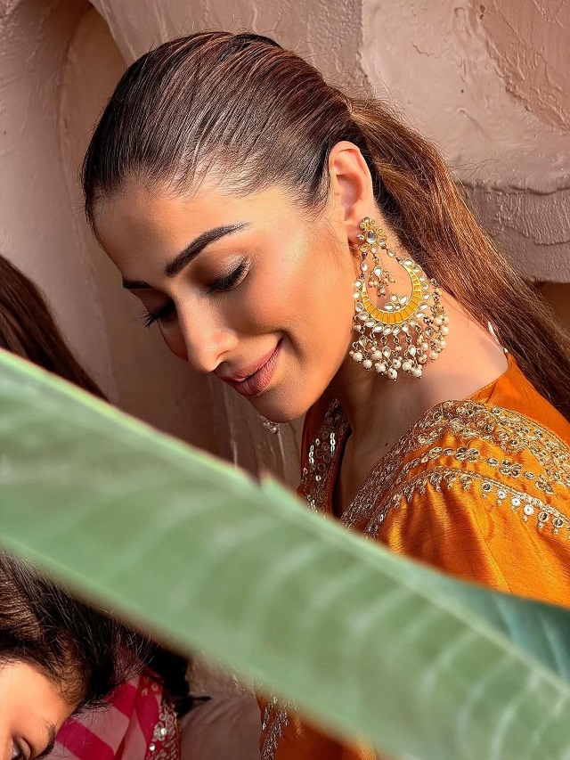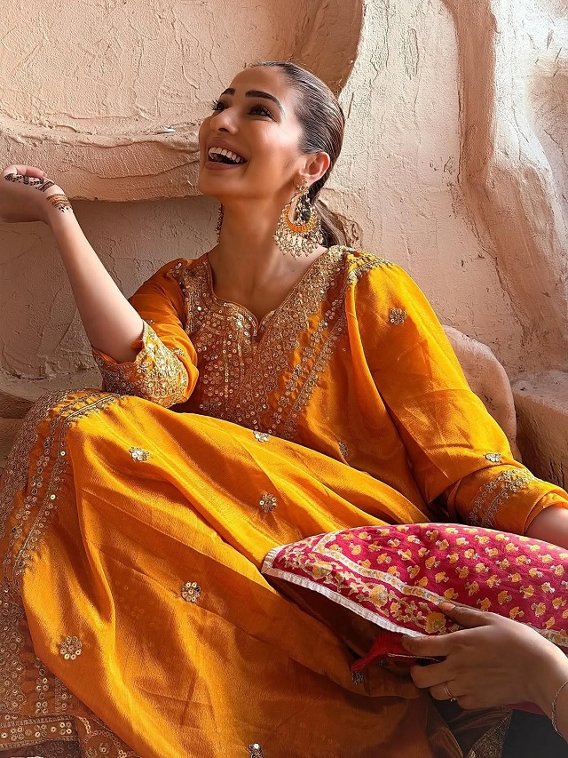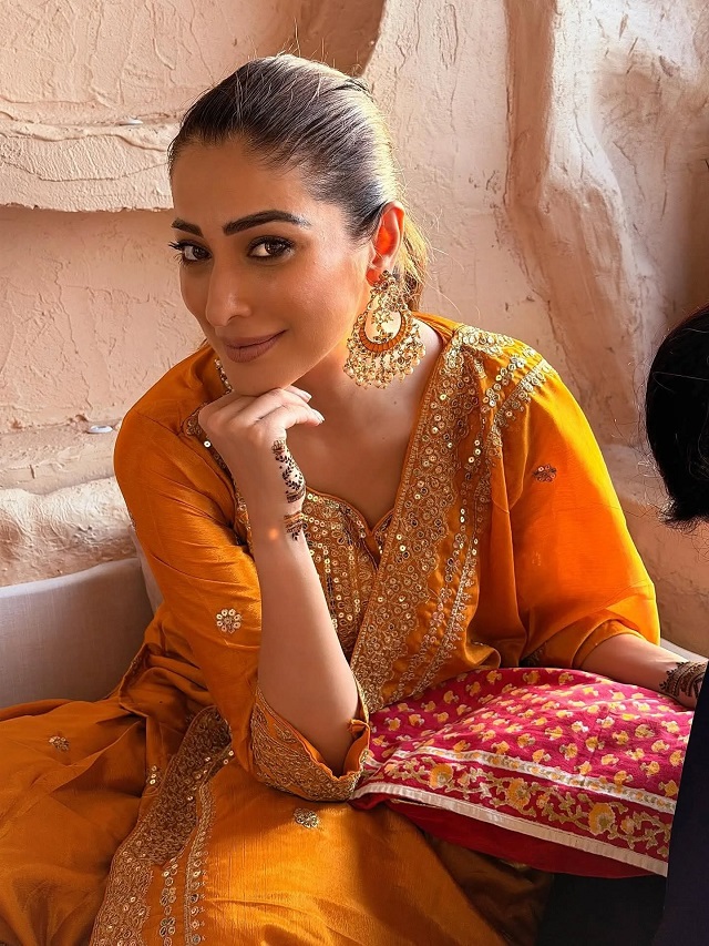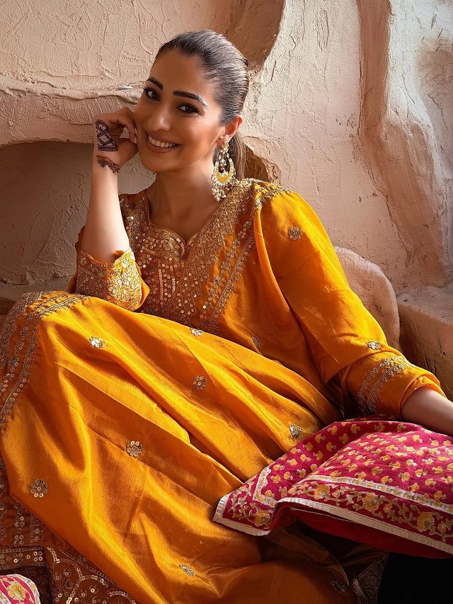 करवाचौथ पर लक्ष्मी राय का ऑरेंज सूट लुक