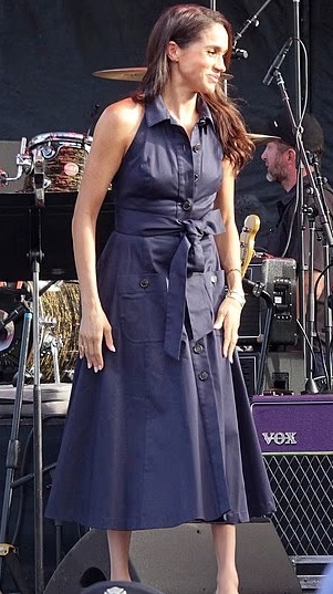 इस अवसर पर मेघन ने स्लीवलेस डार्क नेवी ड्रेस पहनी, जिसे उन्होंने स्टाइलिश पंप्स के साथ पेयर किया।