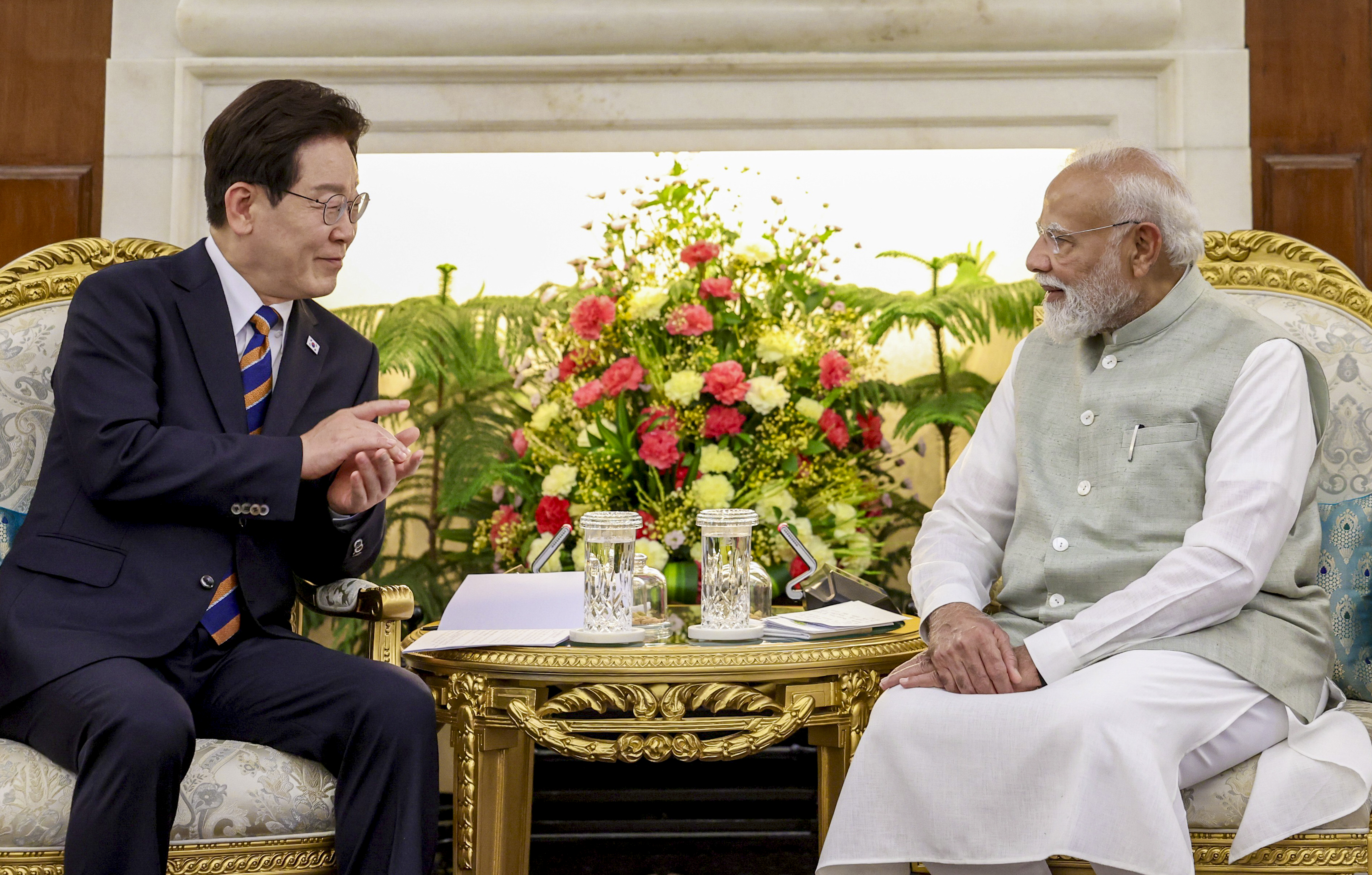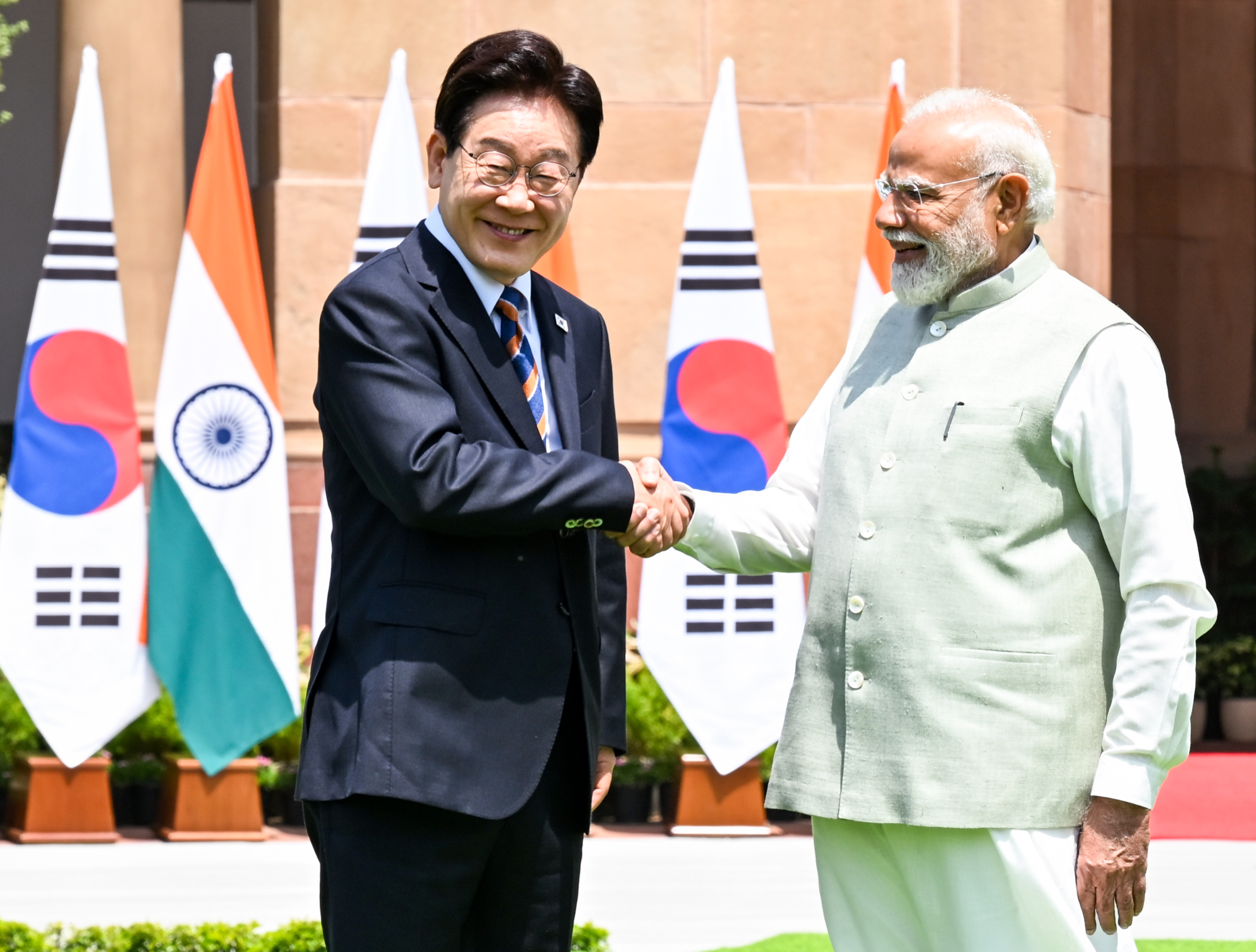 प्रधानमंत्री नरेंद्र मोदी और दक्षिण कोरिया के राष्ट्रपति ली जे-म्युंग के बीच आज दिल्ली के हैदराबाद हाउस में एक ऐतिहासिक द्विपक्षीय बैठक हुई।