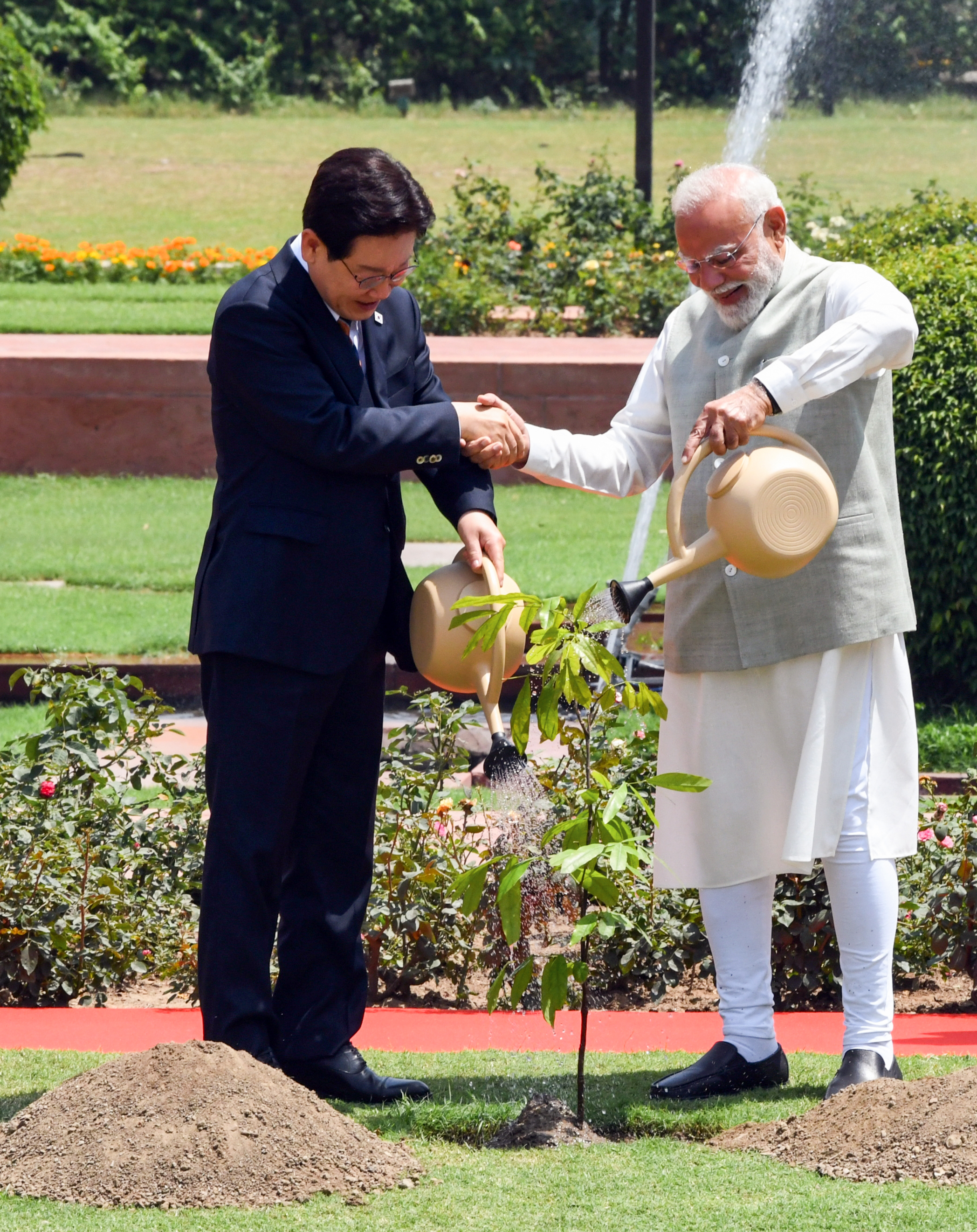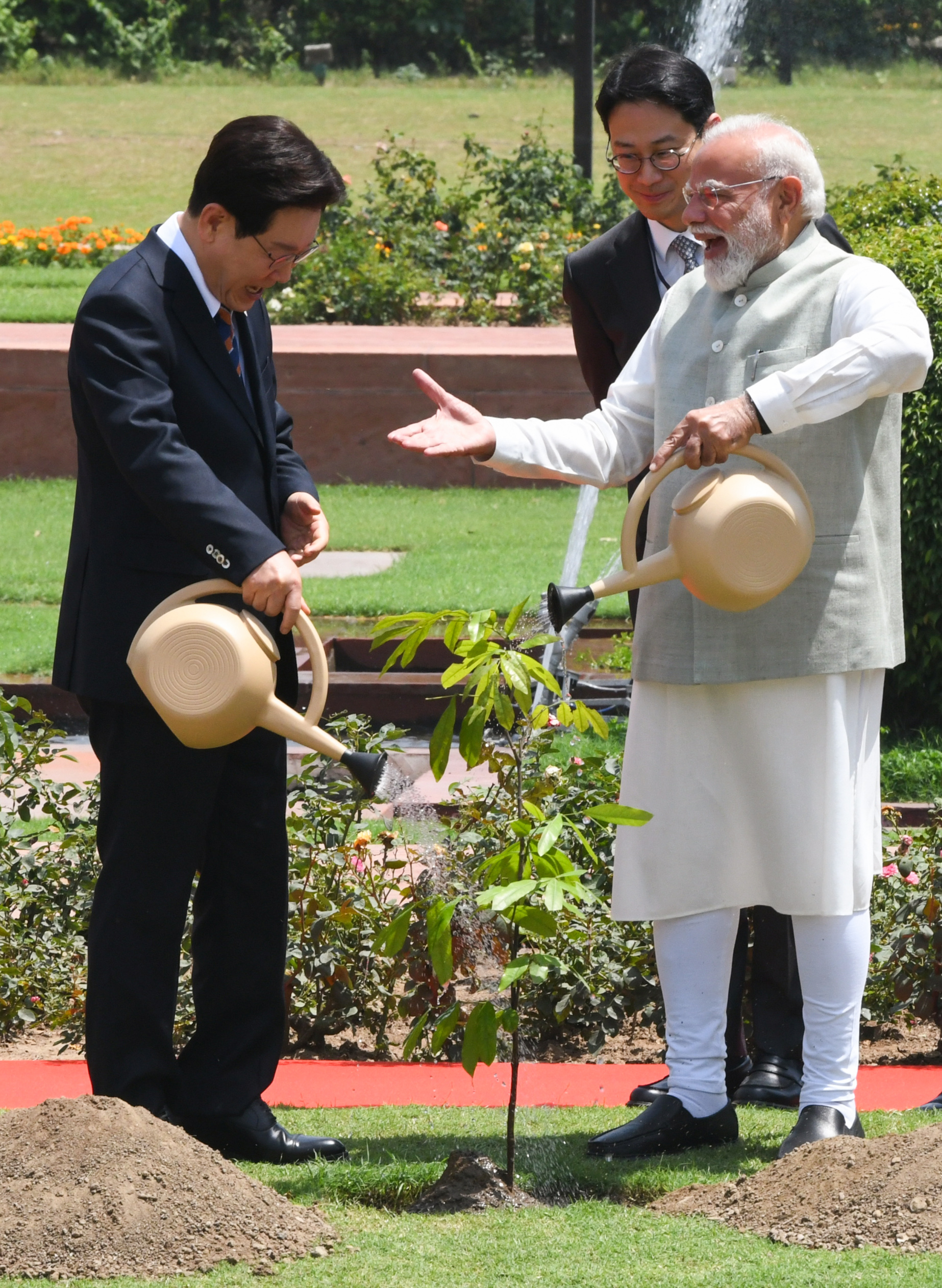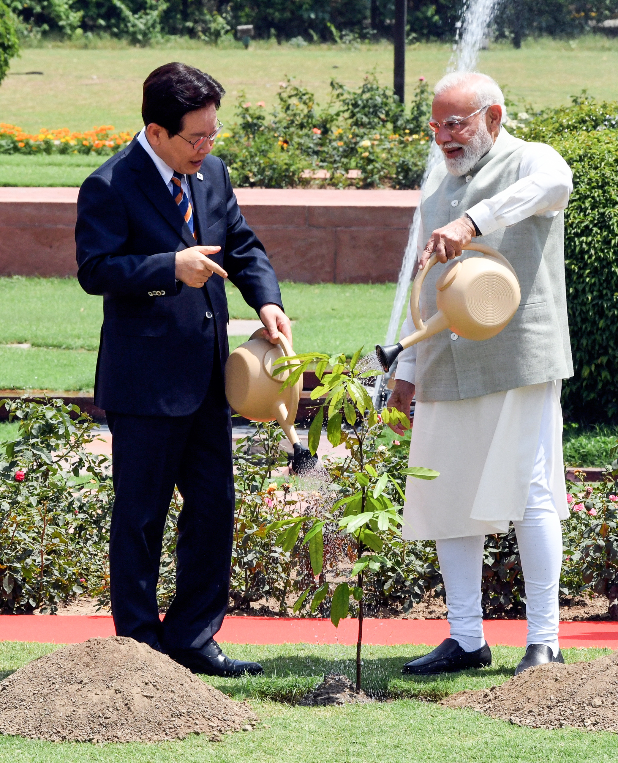 बैठक के दौरान एक बेहद खास पल तब आया जब पीएम मोदी और राष्ट्रपति ली ने एक साथ मिलकर पौधा लगाया।