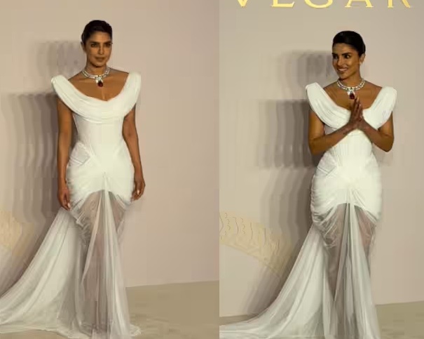 लुक की बात करें तो प्रियंका चोपड़ा इस इवेंट में व्हाइट कलर की सिल्क ट्यूल काउल नेकलाइन ड्रेस पहनकर पहुंचीं।