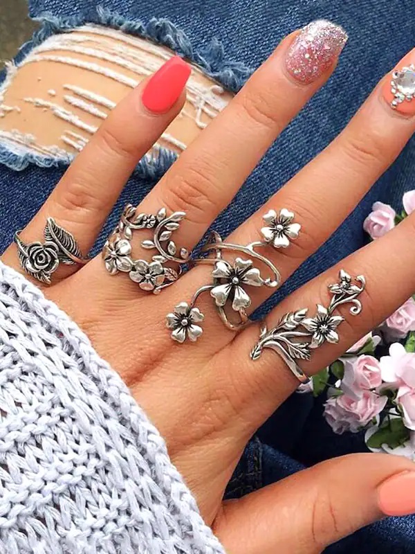 सिंपल कुर्ती के साथ ऑक्सीडाइज्ड सिल्वर ज्वेलरी आपकी लुक में और निखार ला सकती है। इसमें झुमके, अंगूठियां, नोज पिन, सिल्वर नेकलेस जैसे कई चीजें शामिल हैं।