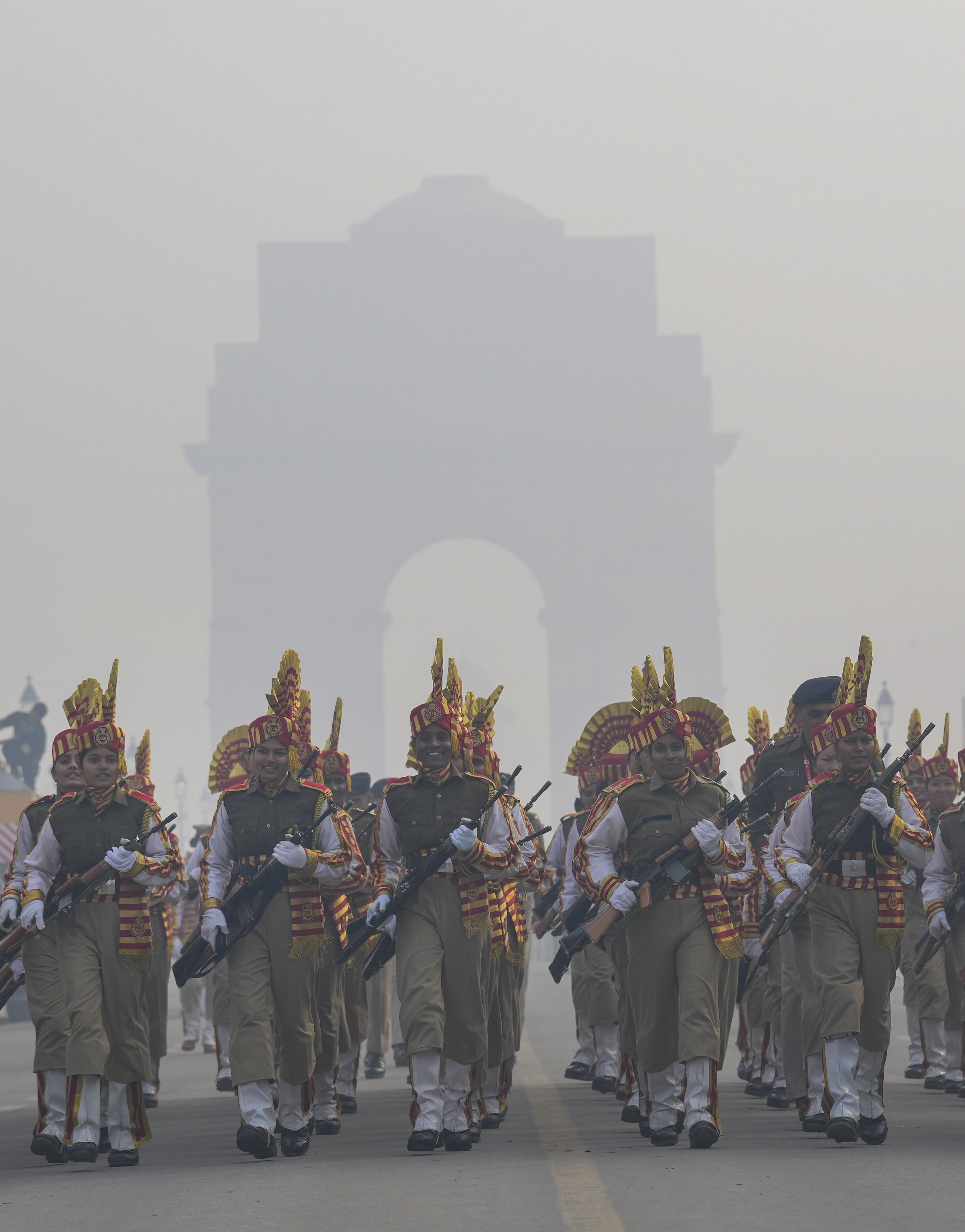 कड़ाके की ठंड के बीच महिला जवानों ने गणतंत्र दिवस परेड के लिए की रिहर्सल